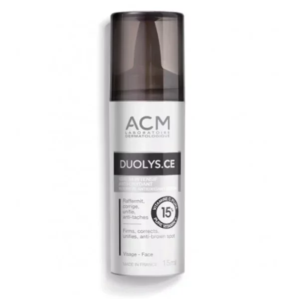 Sa formule double et compartimentée, permet à Duolys CE de lutter simultanément contre tous les signes du vieillissement : rides et ridules, perte de fermeté, taches brunes et manque d’éclat. La vitamine C pure dosée à 15 % permet de bloquer les radicaux libres, de renforcer la production de collagène et de réveiller l’éclat du teint. Pour conserver sa stabilité, la vitamine C est isolée dans un compartiment qui la protège. Chaque actif délivre ainsi toute la puissance de son action anti-âge sur le visage, le cou et le décolleté, tout en respectant les peaux les plus fragiles.