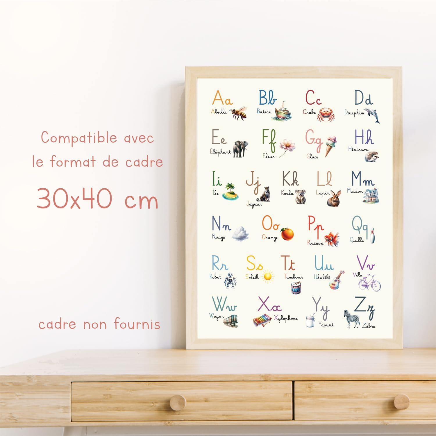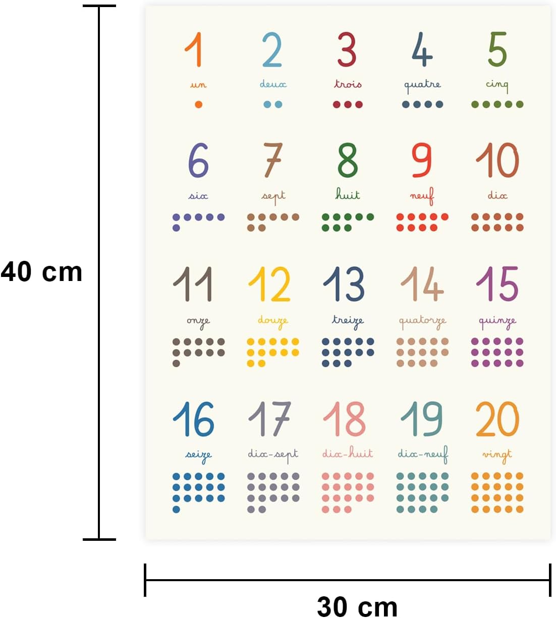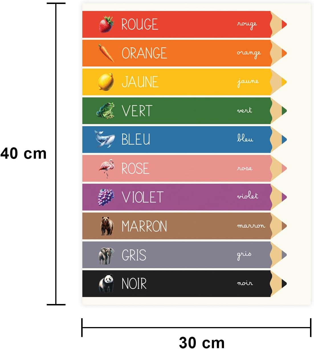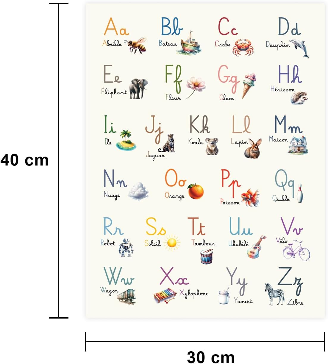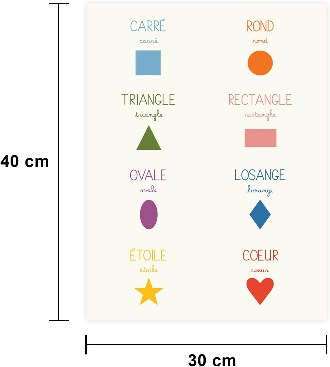 Ces affiches au format 30 x 40 cm s’adaptent facilement aux cadres standards que l’on trouve chez IKEA, Action ou Gifi. Leur taille idéale permet une lecture confortable et une mise en valeur parfaite sur les murs de la chambre ou de la salle de jeux. Elles ne se contentent pas d’être éducatives, elles embellissent également l’espace avec leurs designs soignés et colorés.