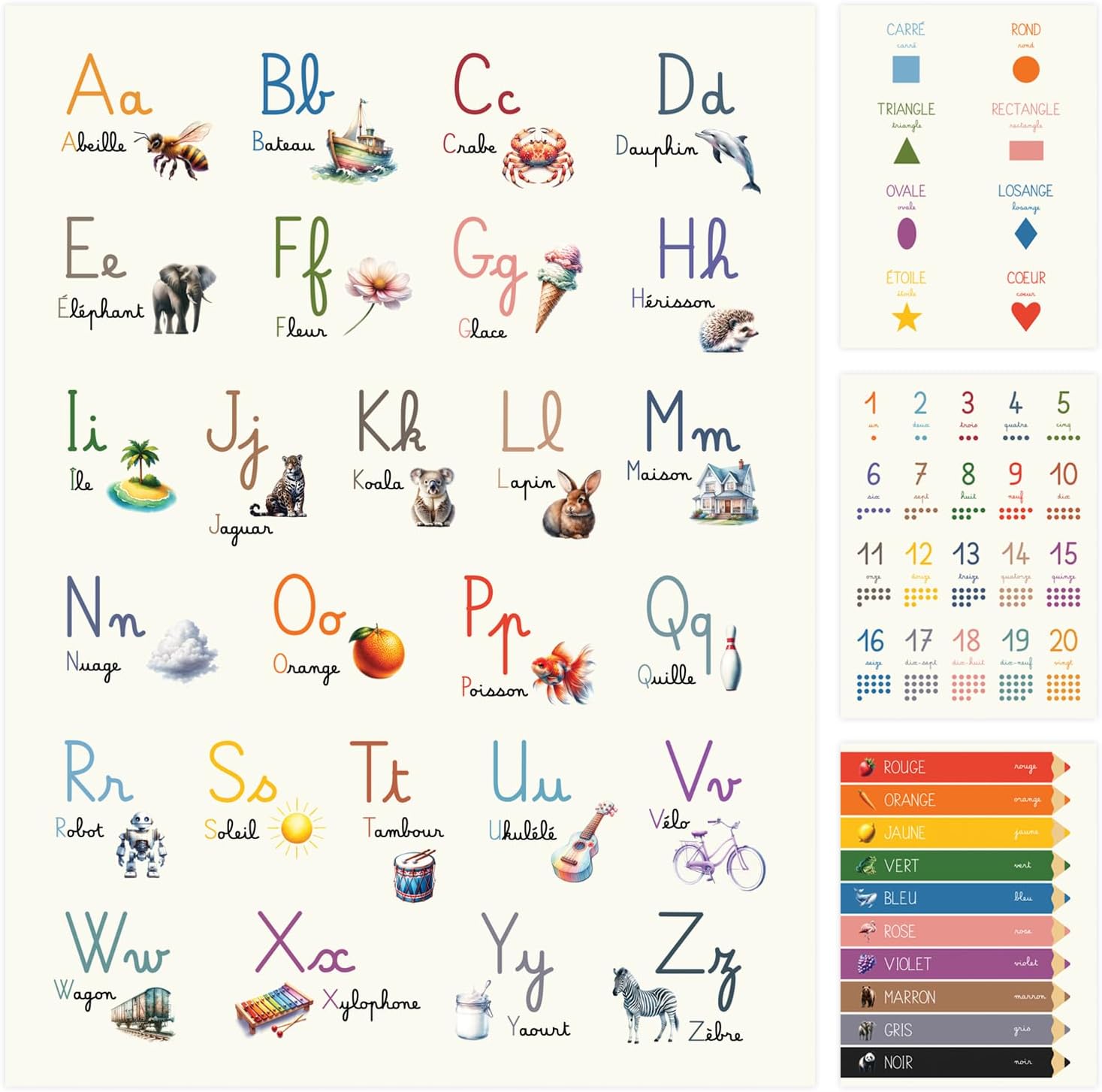 Affiches éducatives montessori pour enfants – alphabet, nombres, couleurs et formes