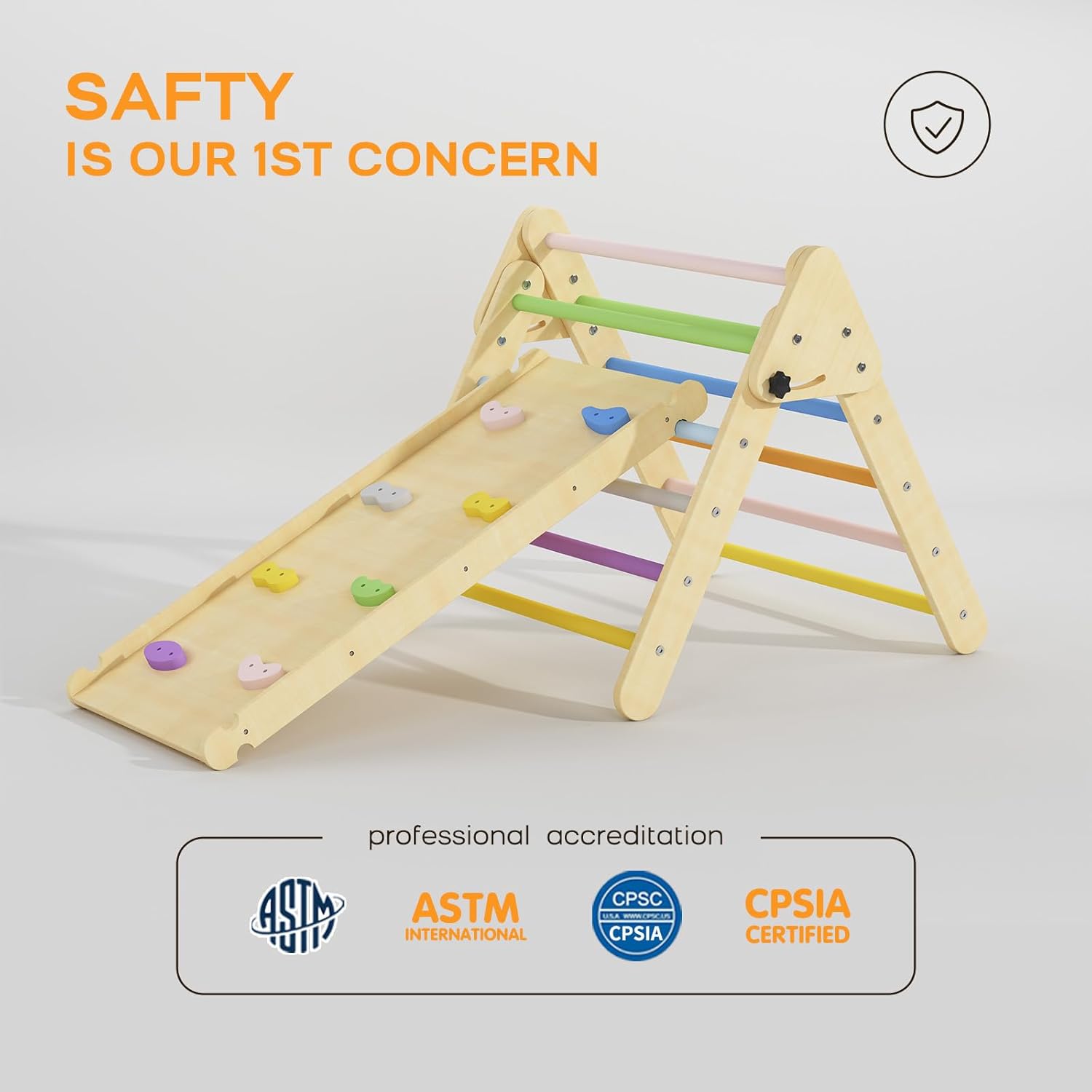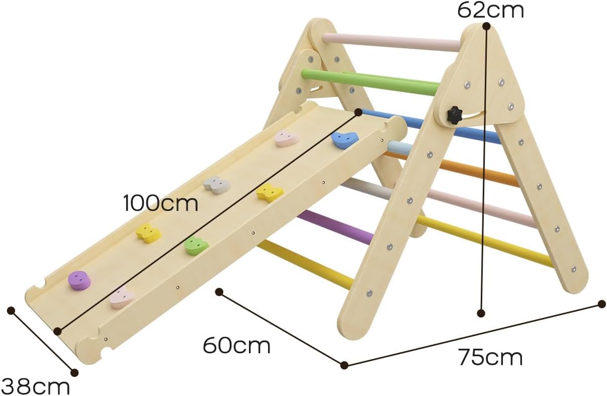 Aire de Jeux Montessori BenaRita 2 en 1 : Triangle d’Escalade Arc-en-Ciel pour Tout-Petits