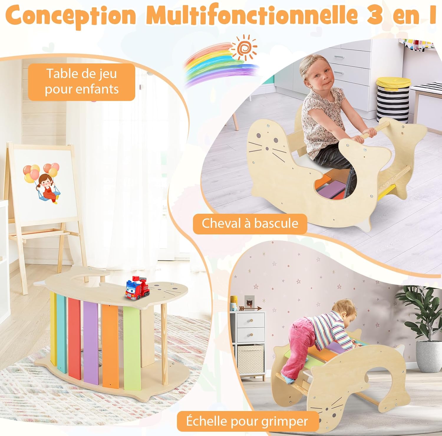 Cette arche Montessori n’est pas qu’un simple jeu. C’est une plateforme d’apprentissage 3 en 1 qui se transforme en échelle d’escalade, table de jeu ludique et cheval à bascule divertissant. Elle s’adapte aux différentes étapes de croissance de votre enfant, offrant une variété d’activités infinies.