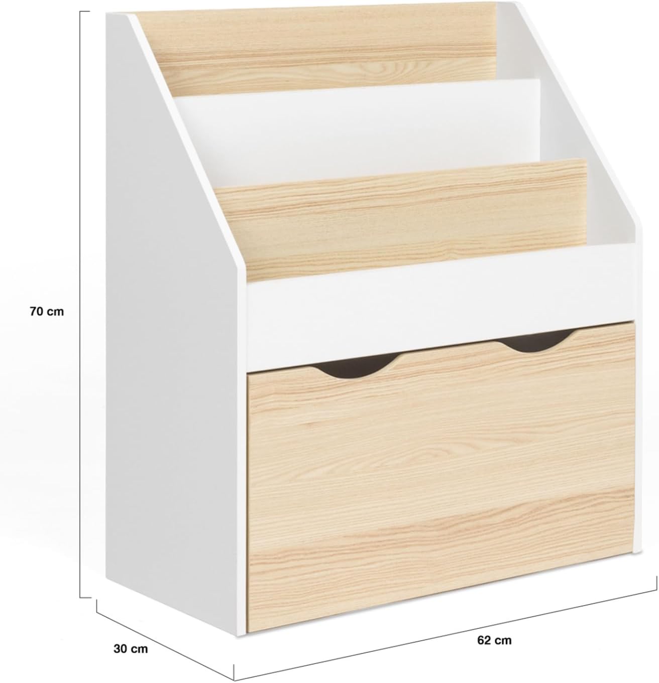 Avec sa hauteur de 70 cm, cette bibliothèque est parfaitement adaptée à la taille des plus jeunes. Ils peuvent ainsi accéder facilement à toutes leurs affaires sans l’aide d’un adulte, favorisant leur indépendance dès le plus jeune âge. Compacte et bien proportionnée, elle trouve aisément sa place dans une chambre d’enfant ou une salle de jeux, tout en offrant une grande capacité de rangement.