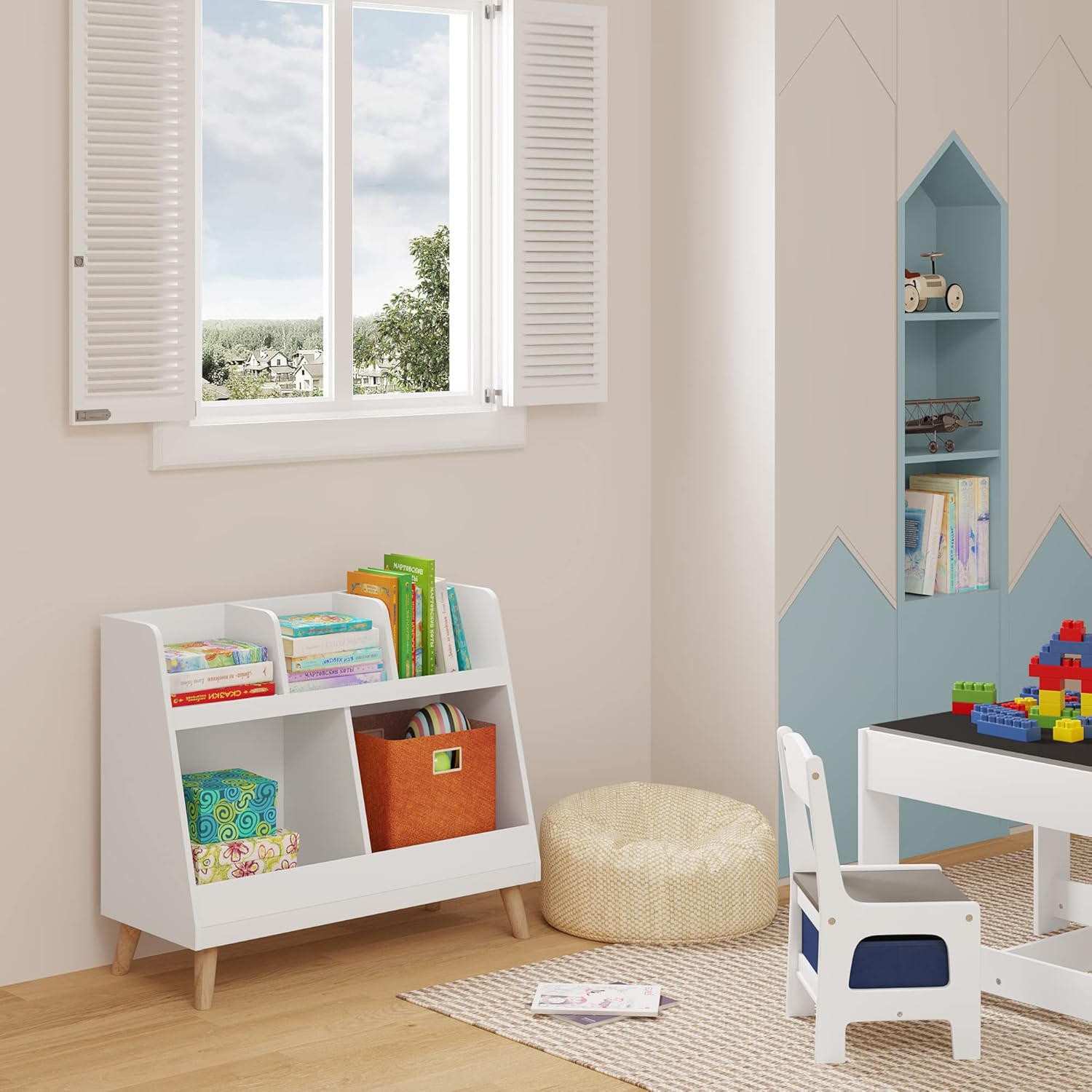 « Bibliothèque Montessori pour Enfants – Meuble de Rangement Multifonctionnel SoBuy KMB35-W »