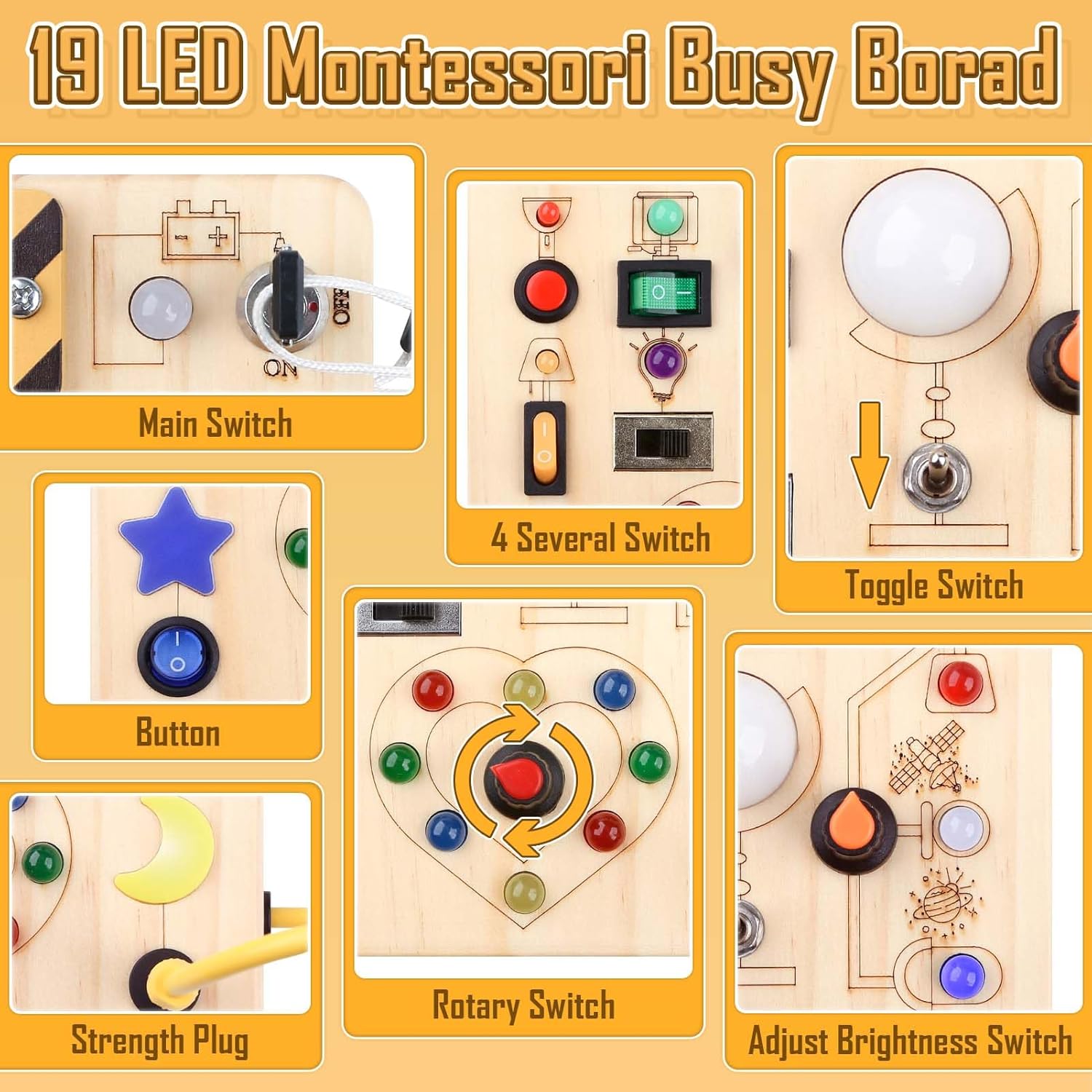 Busy board Montessori Joyreal avec LED : jouet éducatif pour enfants de 2 à 4 ans