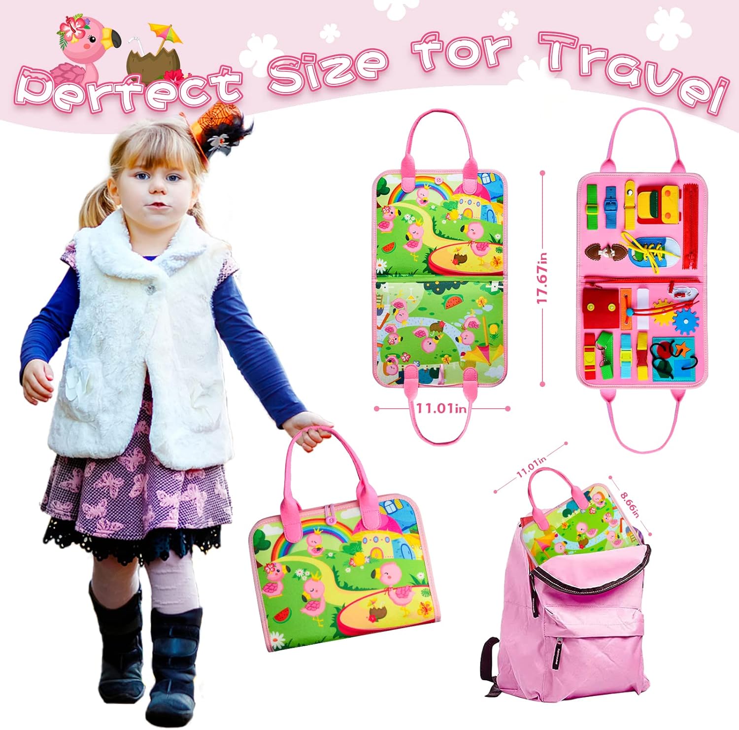 Busy board Montessori rose pour bébé 1 à 4 ans : jouet éducatif avec puzzle