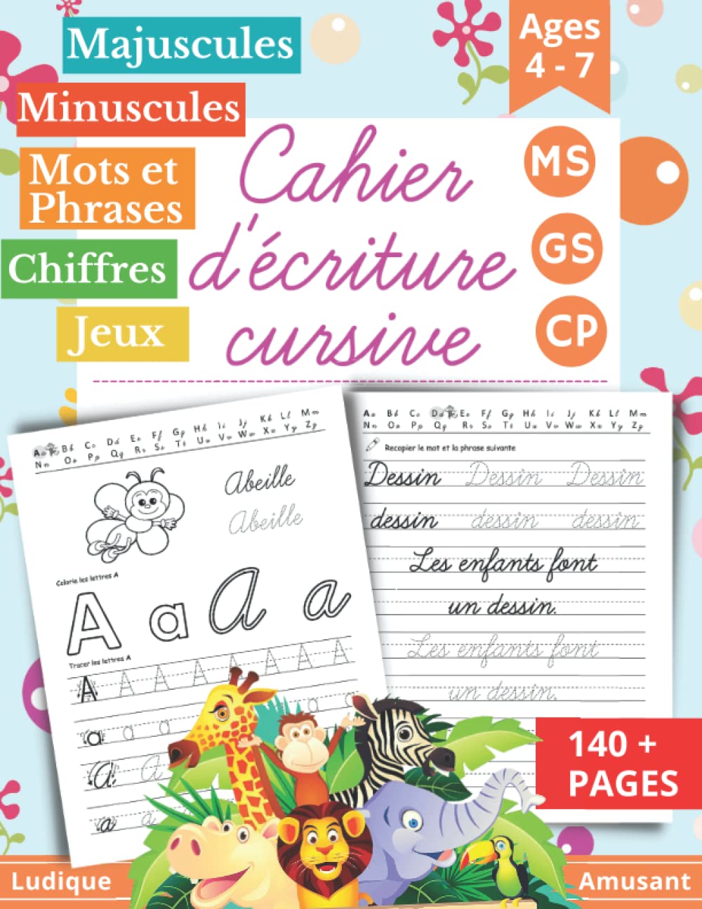En plus de l’apprentissage des lettres, ce cahier propose une approche ludique avec un animal à colorier au début de chaque alphabet. Cette stratégie stimulante encourage l’enfant à apprendre en s’amusant, tout en renforçant sa concentration et sa motivation. De plus, le cahier propose des mots et des phrases à recopier pour pratiquer l’écriture cursive, ainsi que l’apprentissage et la comptabilisation des chiffres de 1 à 20.