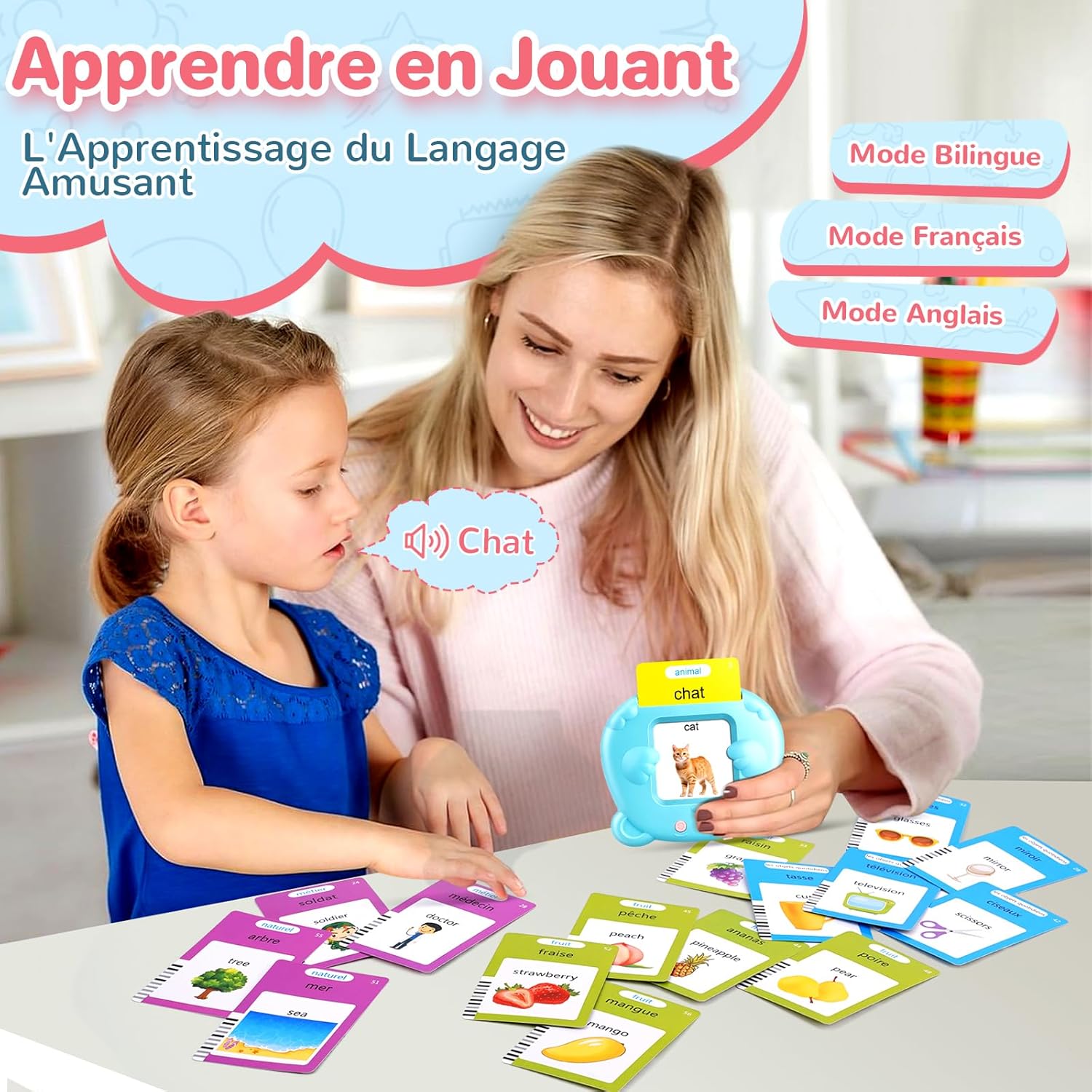 Conçue pour stimuler l’intérêt et la curiosité des enfants, cette carte flash parlante propose trois modes de prononciation : français uniquement, anglais uniquement ou bilingue. Ainsi, vous pouvez adapter l’apprentissage selon les besoins de votre enfant, sans craindre une confusion entre les deux langues. De plus, l’apprentissage se fait en toute sécurité, grâce à sa matière principale en plastique, robuste et non toxique.
