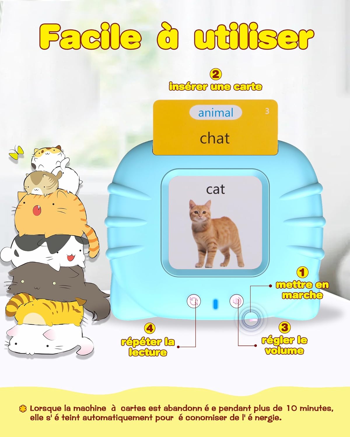 Les couleurs vives et les sons fascinants de cette carte parlante captent l’attention des enfants, stimulent leur curiosité et renforcent leur intérêt pour l’apprentissage. Conçue comme un jouet sensoriel, cette carte interactive contribue à améliorer le développement de la parole des tout-petits.