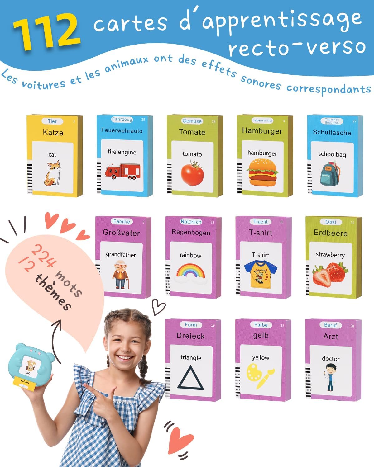 Au-delà de la lecture des mots, ces cartes parlantes imitent également les sons d’animaux et de véhicules réels. Cette particularité offre une expérience sensorielle unique, capturant l’attention des enfants et suscitant leur intérêt pour l’apprentissage. En stimulant les capacités cognitives précoces, l’écoute active et le développement du vocabulaire, cet outil se présente comme un véritable allié pour l’apprentissage précoce.