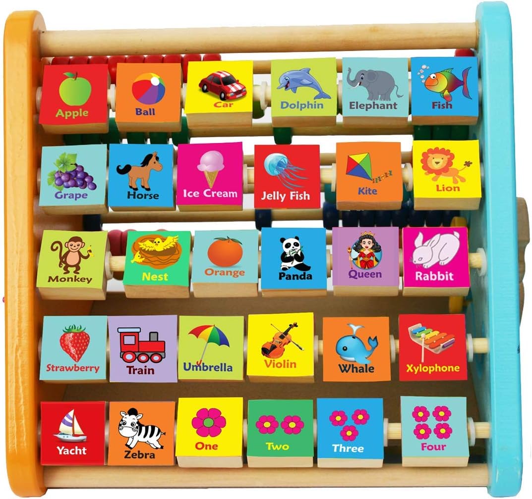 Ce centre d’activités offre une panoplie de jeux éducatifs intégrés. Les 26 cubes en bois basculants lui permettront de découvrir l’alphabet et d’associer chaque lettre à une image et un mot en anglais. L’abaque lui apprendra à compter, tandis que l’horloge lui donnera ses premières notions du temps. Enfin, le poisson coulissant et le tableau blanc ajoutent une dimension créative et interactive à cet ensemble déjà riche.
