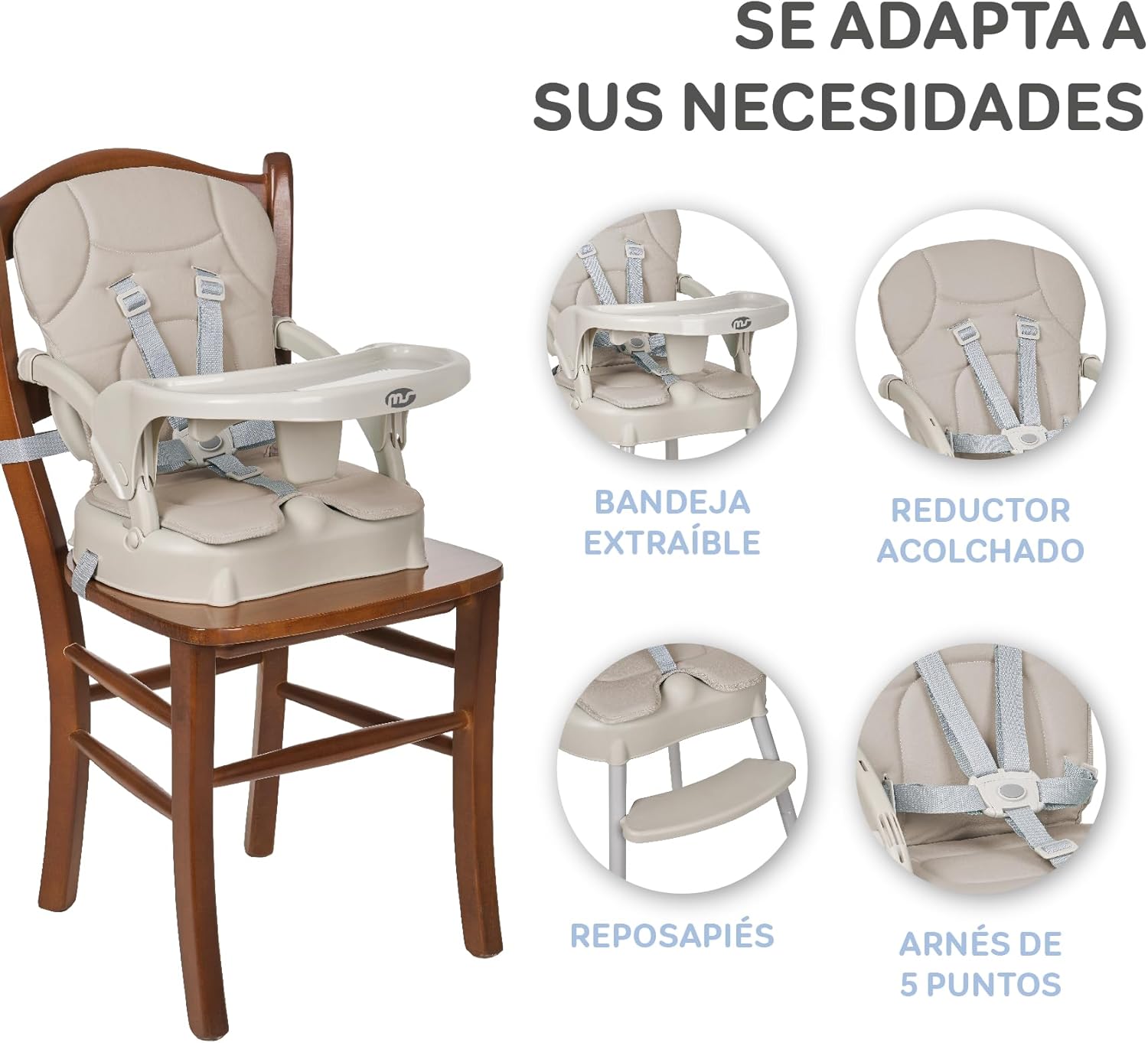 - Rehausseur, pratique pour adapter la hauteur de votre enfant à différentes situations.