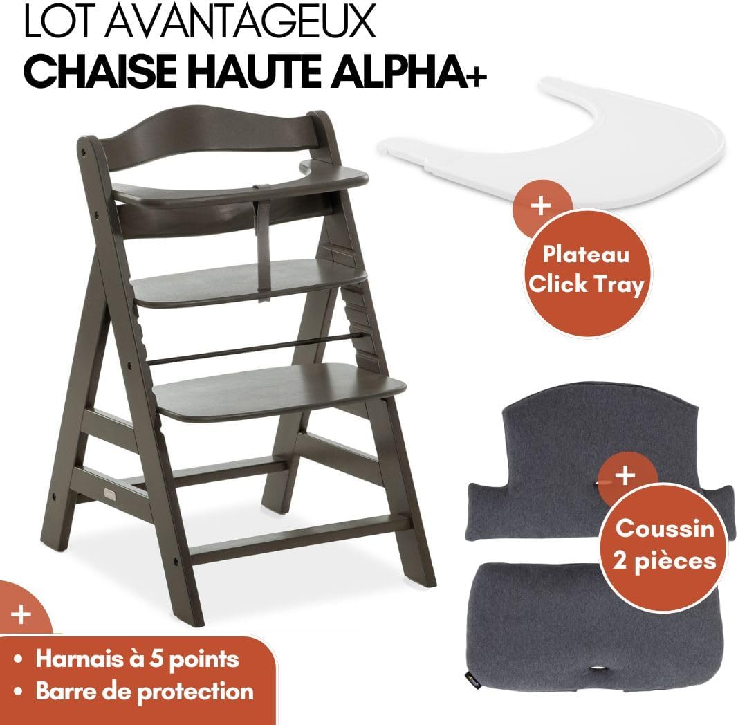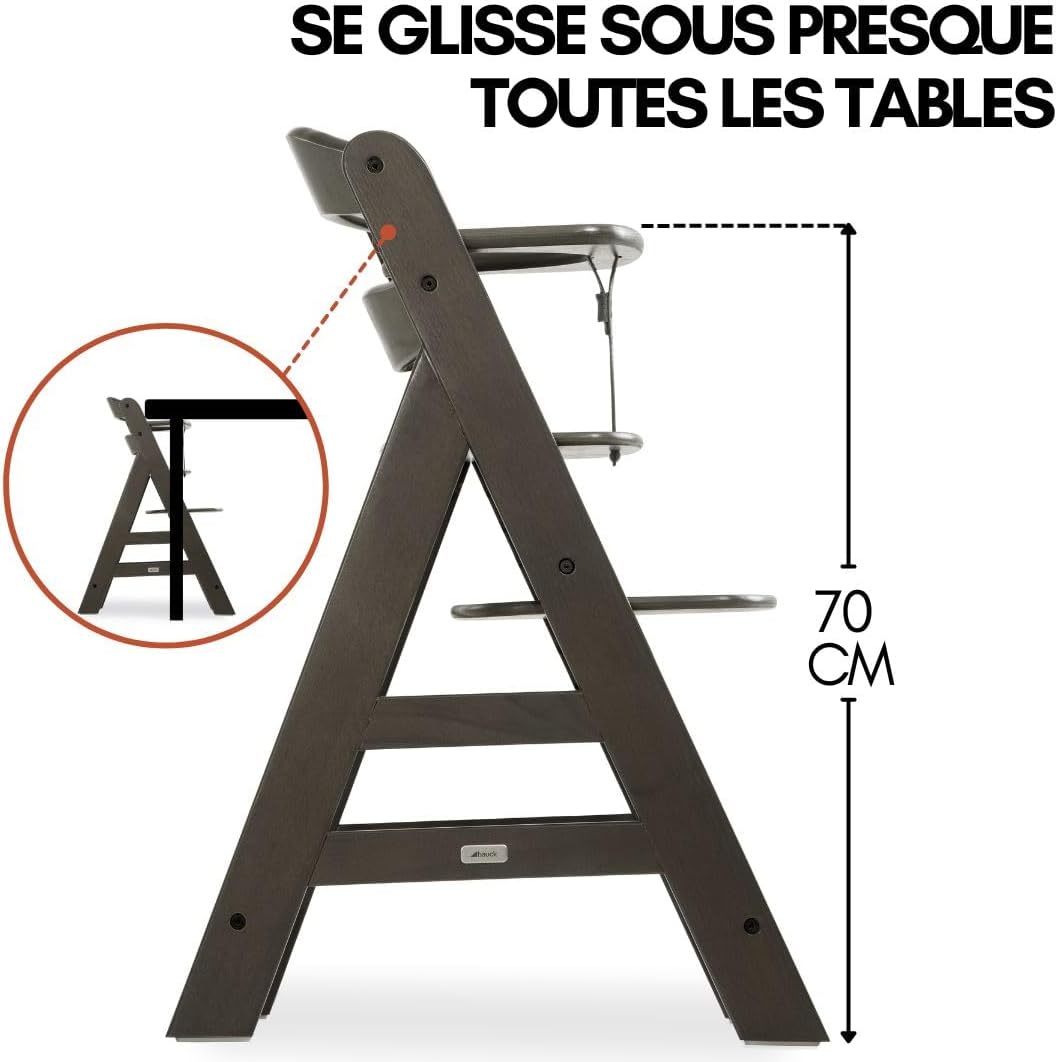 Chaise haute bébé évolutive Montessori en bois gris charbon Hauck dès 6 mois