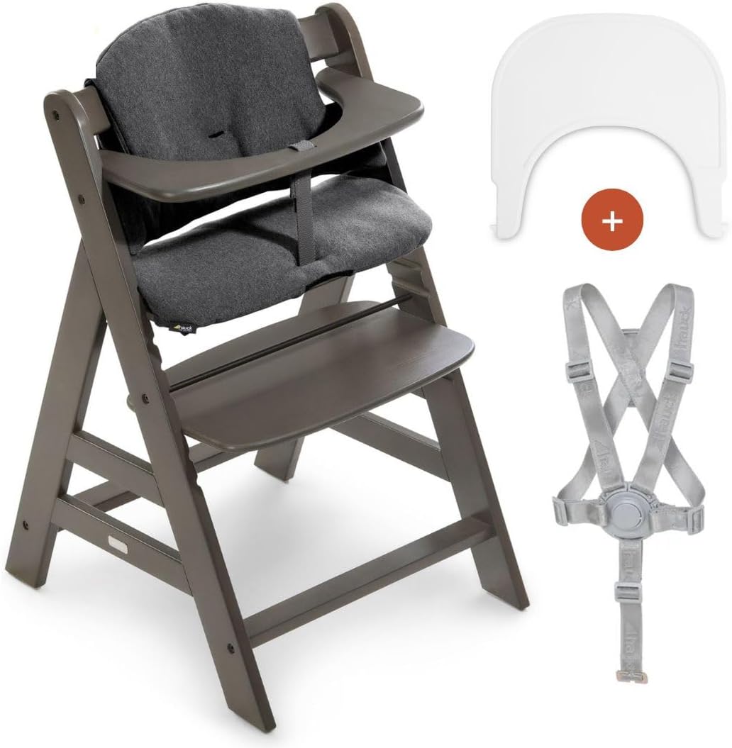 Chaise haute bébé évolutive Montessori : une conception en bois gris charbon Hauck pour l’apprentissage autonome dès 6 mois