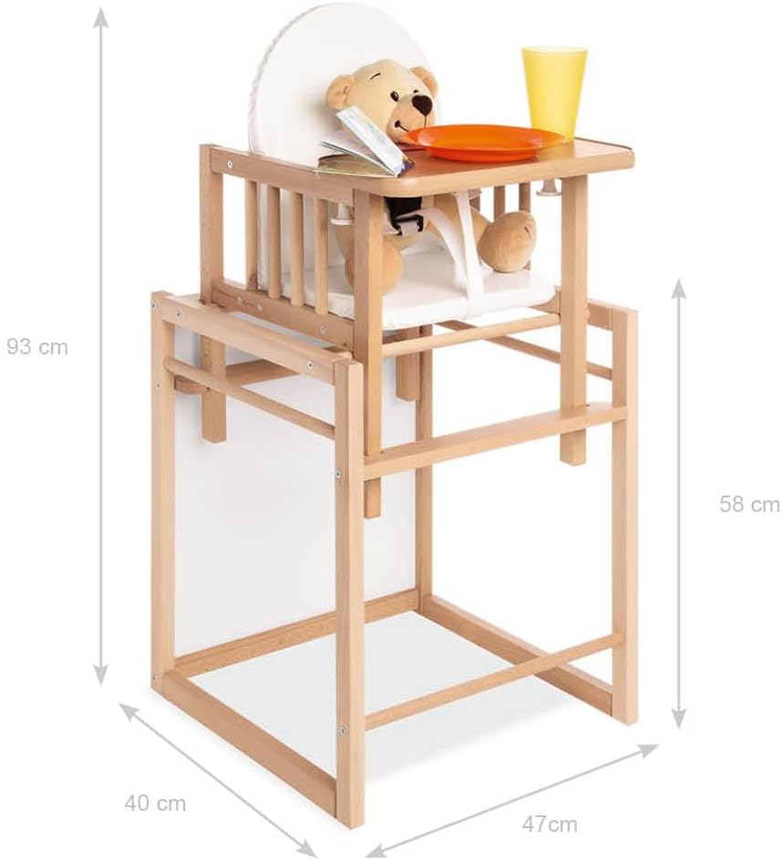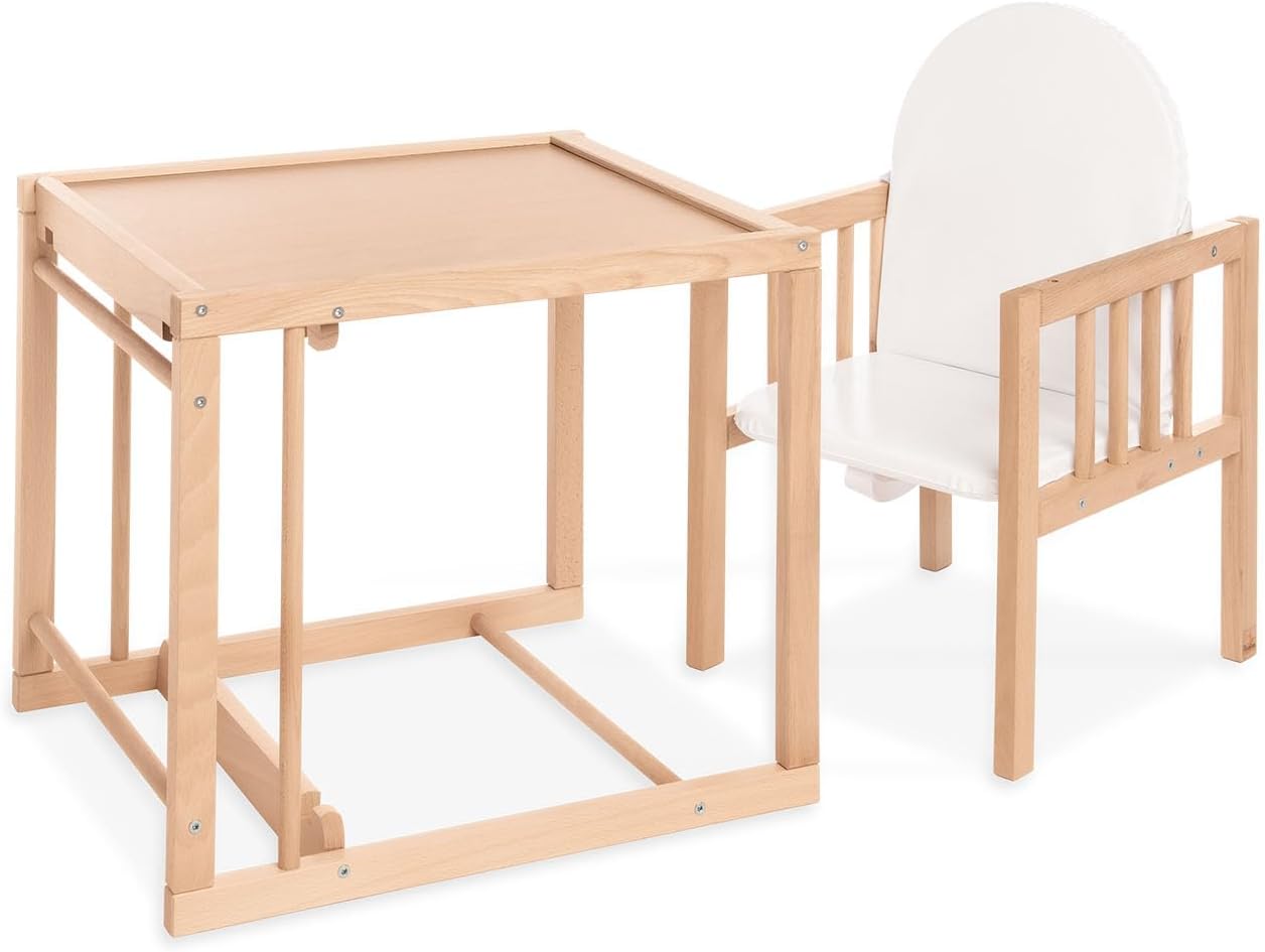 Le modèle 151303 de cette chaise haute combinée se distingue par sa remarquable convertibilité. Fabriquée en bois massif, elle présente des dimensions de 50 x 88 x 44 cm pour un poids de 6,29 kilogrammes, permettant une installation stable et sécurisée.