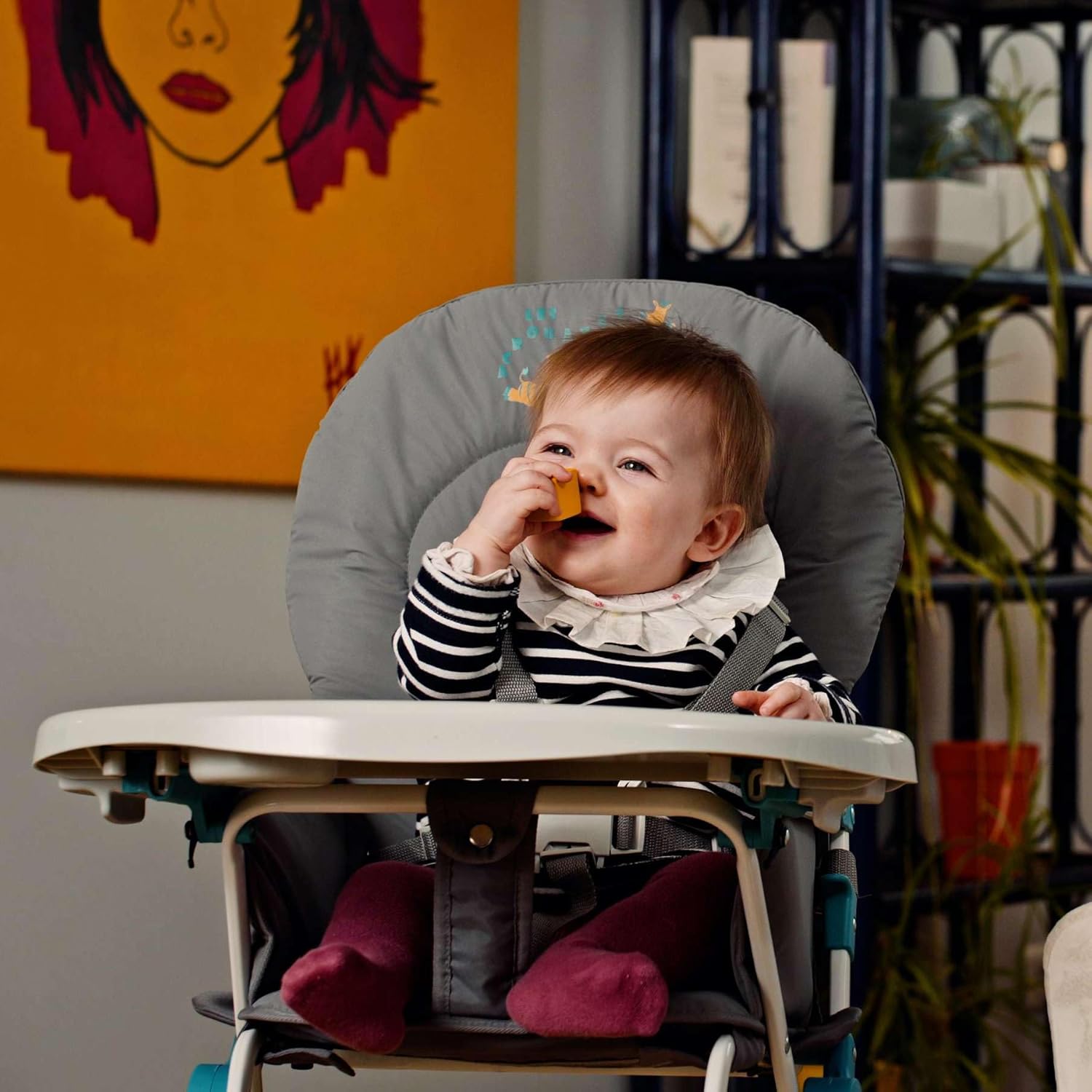 La chaise haute enfant dispose d’une tablette réglable en profondeur et amovible. Cette fonctionnalité permet d’adapter l’espace selon l’âge du bébé. De plus, la tablette peut être retirée facilement pour installer le bébé ou pour placer la chaise contre une table lors des repas familiaux. Ainsi, votre enfant se sentira intégré parmi les grands.