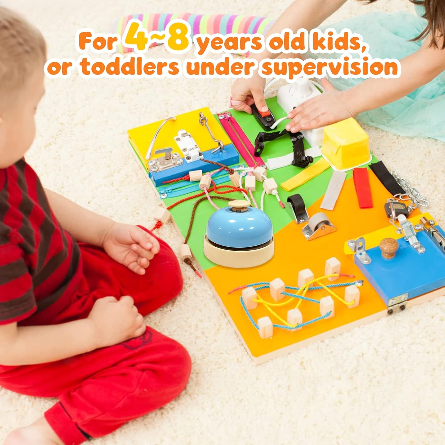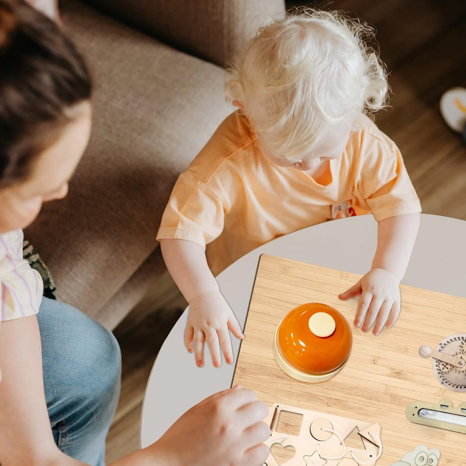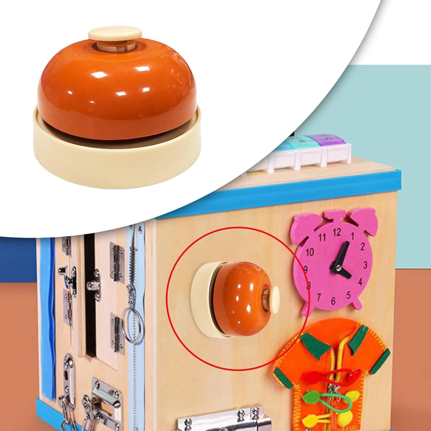 Laissez libre cours à l’imagination de vos enfants grâce à cette cloche compatible avec les **Busy Boards Montessori**. Ils peuvent ainsi assembler et personnaliser leurs propres créations, développant leur sens de l’innovation tout en s’amusant. Une activité qui allie apprentissage pratique et plaisir.