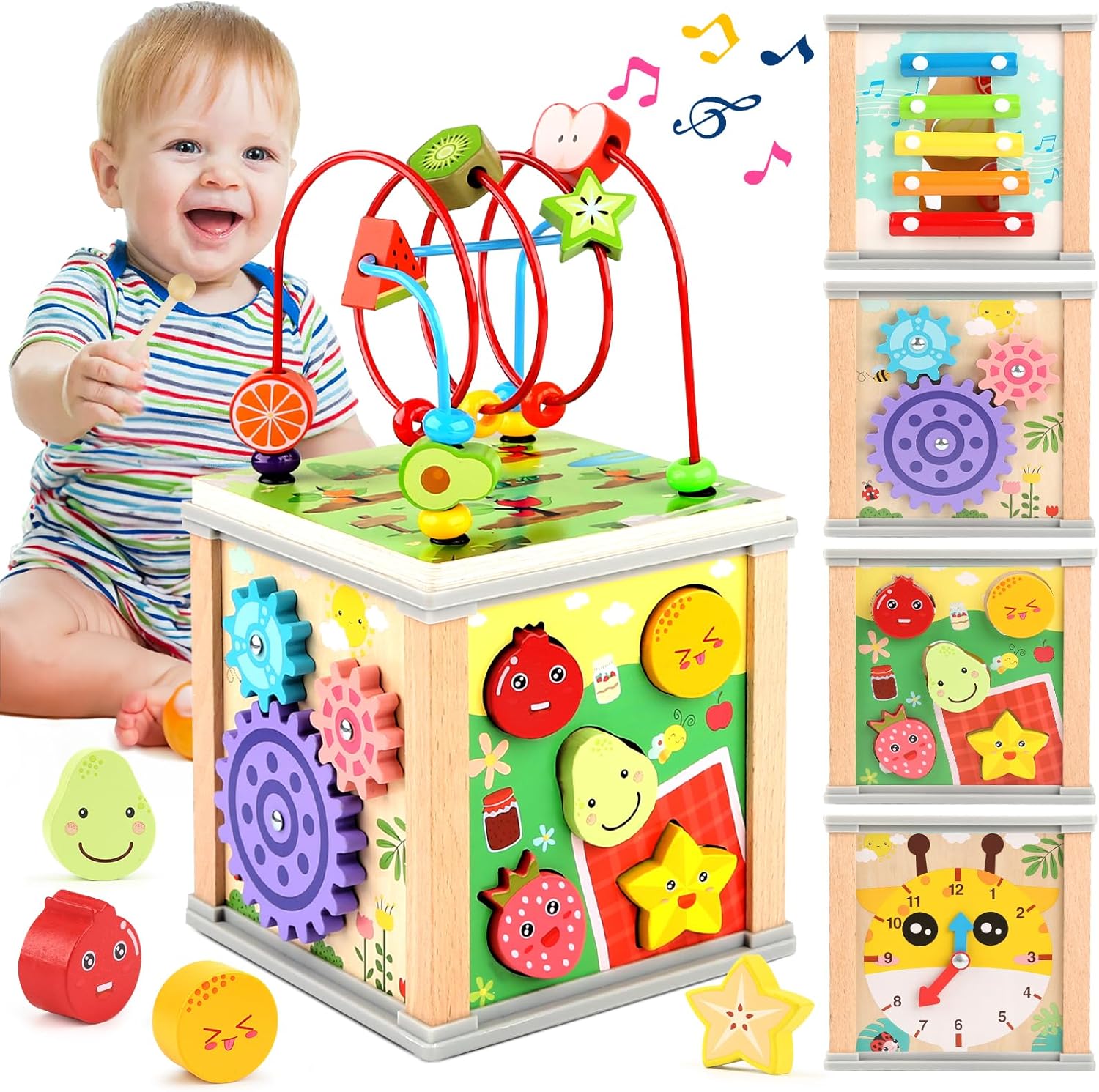 Ce jouet, avec ses dimensions de 2,54 x 2,54 x 2,54 cm pour un poids de 980 grammes, est spécialement conçu pour être manipulé par des petites mains. Il est ainsi parfaitement adapté pour un enfant jouant seul. Confectionné en bois, ce cube d’activité robuste arbore une teinte marron chaleureuse qui séduira autant les enfants que leurs parents.