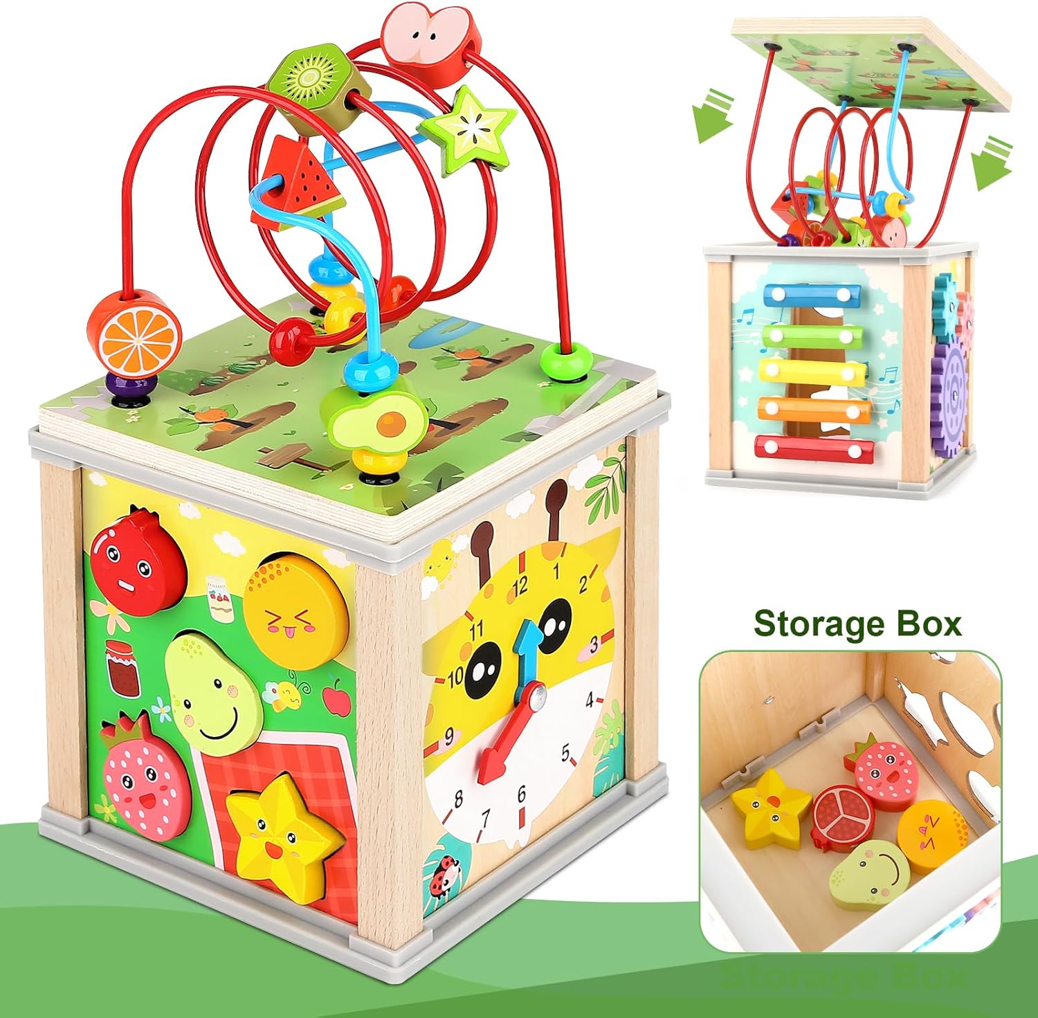 Outre ses fonctions éducatives, le cube d’activité Montessori Dinorun dispose d’une boîte de rangement intégrée. Après le jeu, tous les blocs peuvent y être rangés facilement. De plus, le labyrinthe de perles peut être retourné et placé sur le dessus du cube pour faciliter son rangement et son transport.