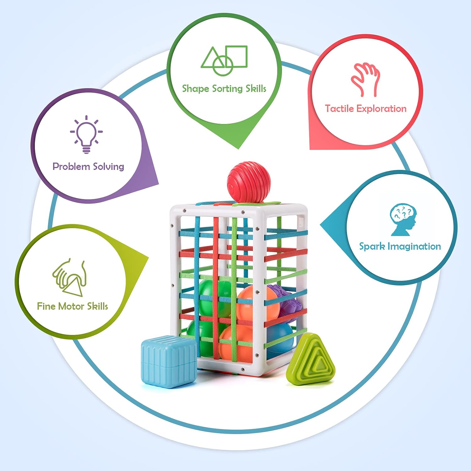 Loin d’être un simple cube, ce jouet regorge d’activités stimulantes. Chaque face propose une expérience unique, allant du simple jeu de tri à l’exercice de précision. En tirant sur la drôle de bande de caoutchouc, votre enfant renforcera non seulement sa force manuelle, mais aussi sa flexibilité digitale. L’objectif ici n’est pas uniquement le jeu, mais également le développement des compétences motrices et de la pensée créatrice. Grâce à ce cube, votre enfant sera amené à résoudre des problèmes, à se concentrer et à utiliser sa créativité pour interagir avec les différentes activités proposées.