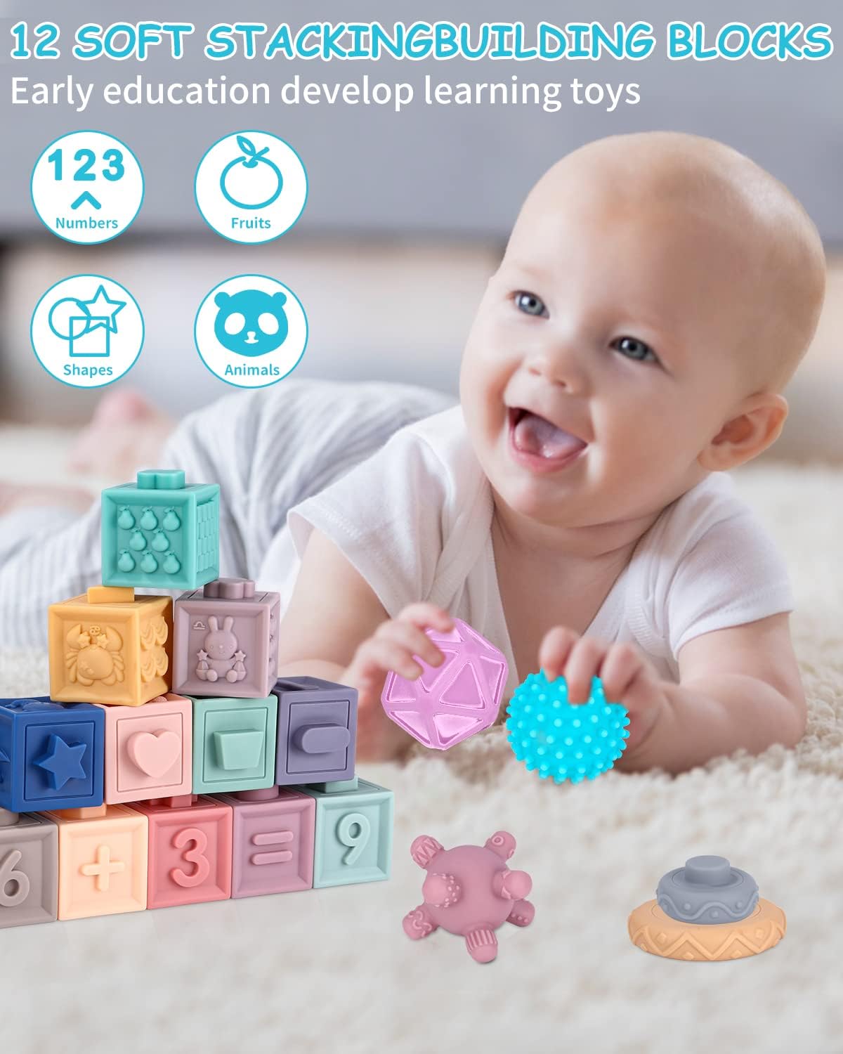 Nos blocs doux ne sont pas seulement idéaux pour le développement précoce, ils sont aussi d’excellents jouets de dentition. Ils peuvent soulager efficacement l’inconfort des gencives lors de la dentition. De plus, ces blocs peuvent flotter sur l’eau et être pressés pour vaporiser l’eau, ce qui en fait un jouet de bain amusant.