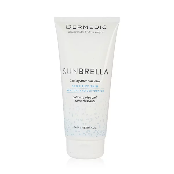 Dermedic Sunbrella lotion de refroidissement après un bain de soleil est recommandé pour les personnes ayant la peau sensible, très sèche, exposée à la lumière du soleil de longue durée.