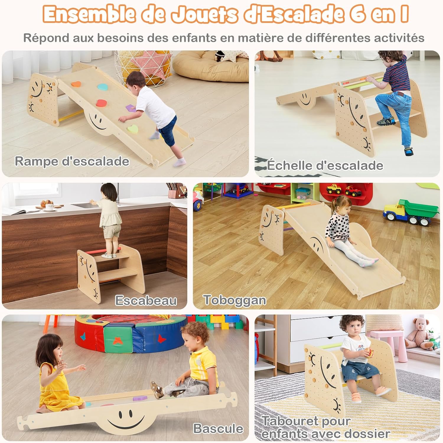 Échelle d’escalade Montessori 6 en 1 pour enfants avec rampe ajustable