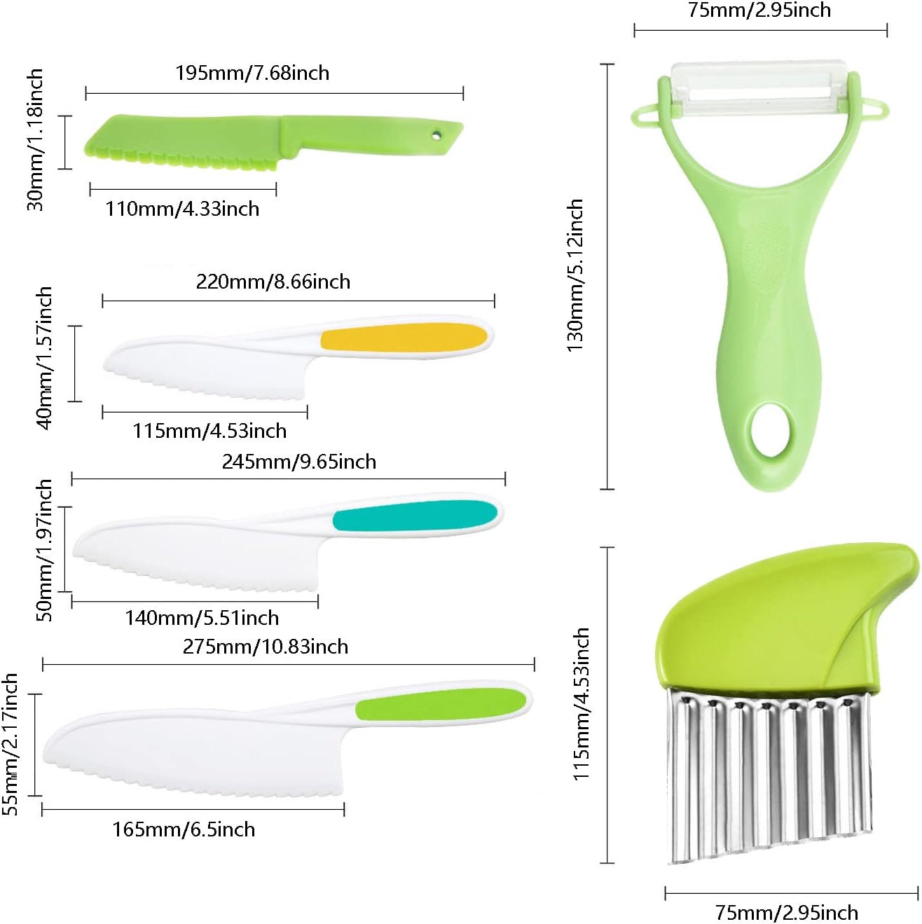 Le forfait comprend 6 ustensiles de cuisine pour enfants, dont 4 couteaux, un couteau à éplucher, un couteau à pommes de terre. Avec une variété de styles et d’utilisations, cet ensemble est parfait pour tous les besoins culinaires des tout-petits.