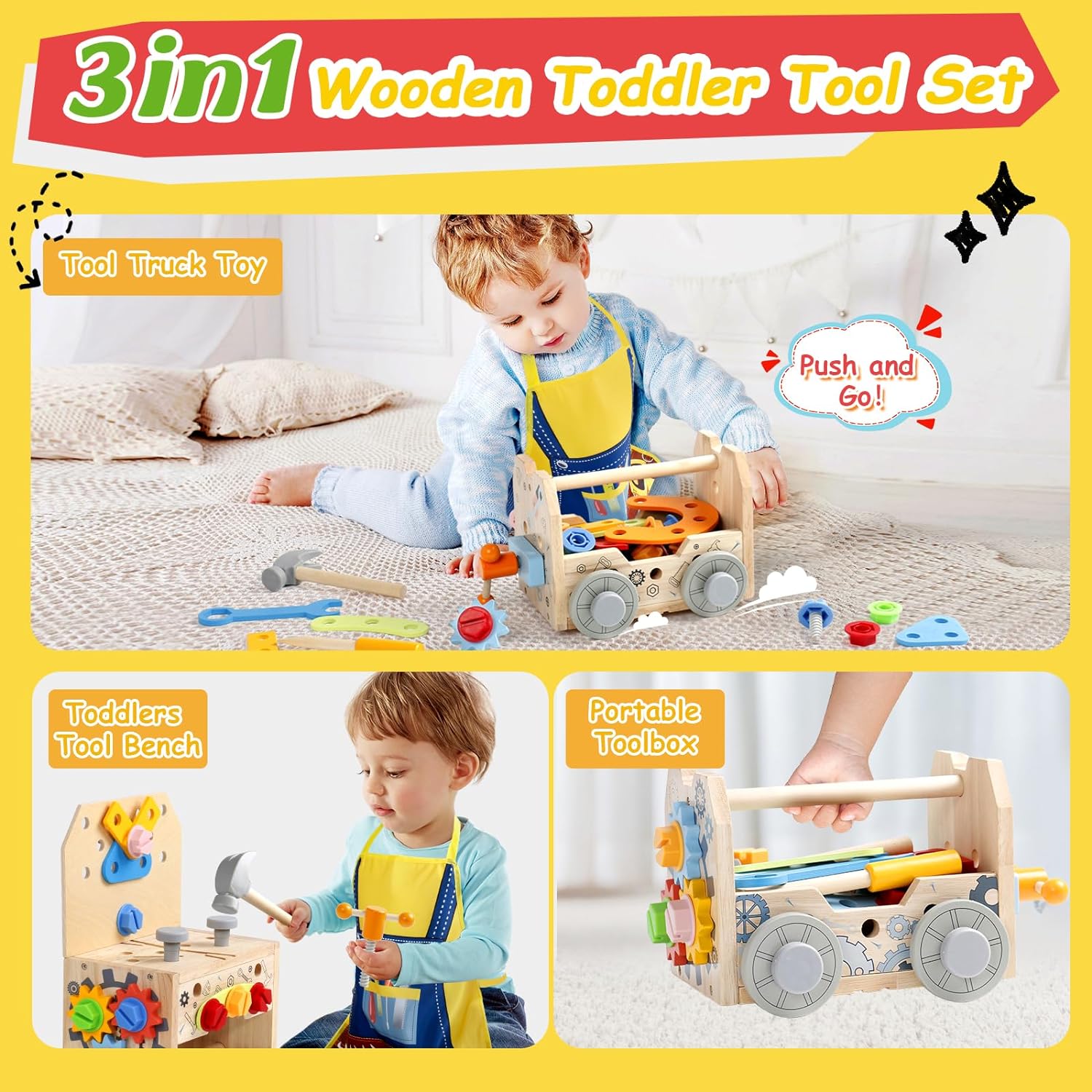Boite à Outils en Bois Montessori pour Enfants de 3 à 5 ans