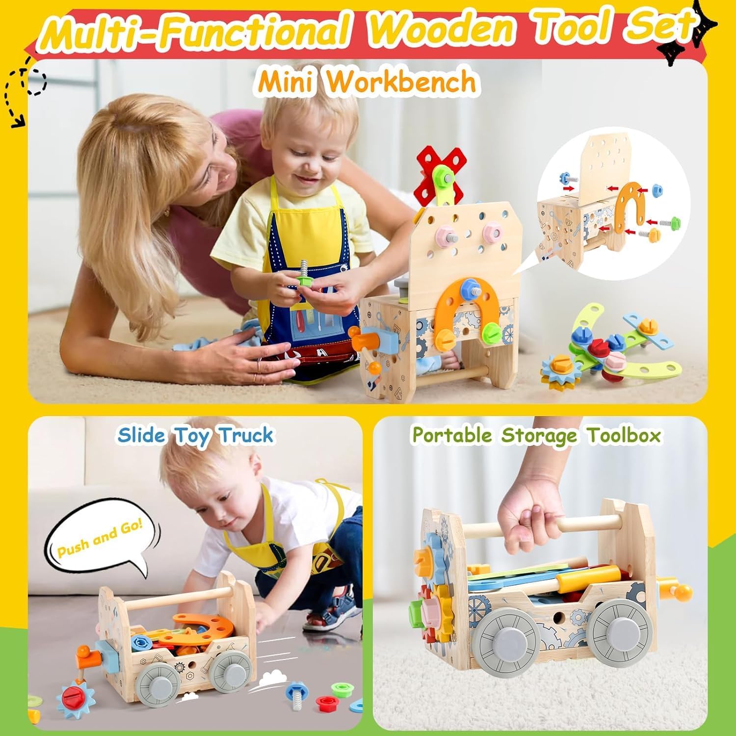 Boite à Outils en Bois Montessori pour Enfants de 3 à 5 ans
