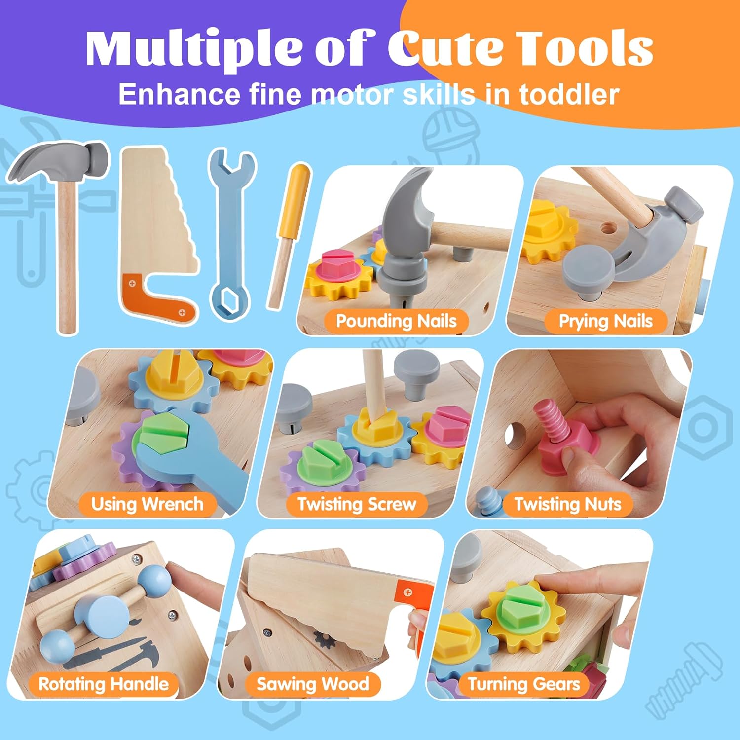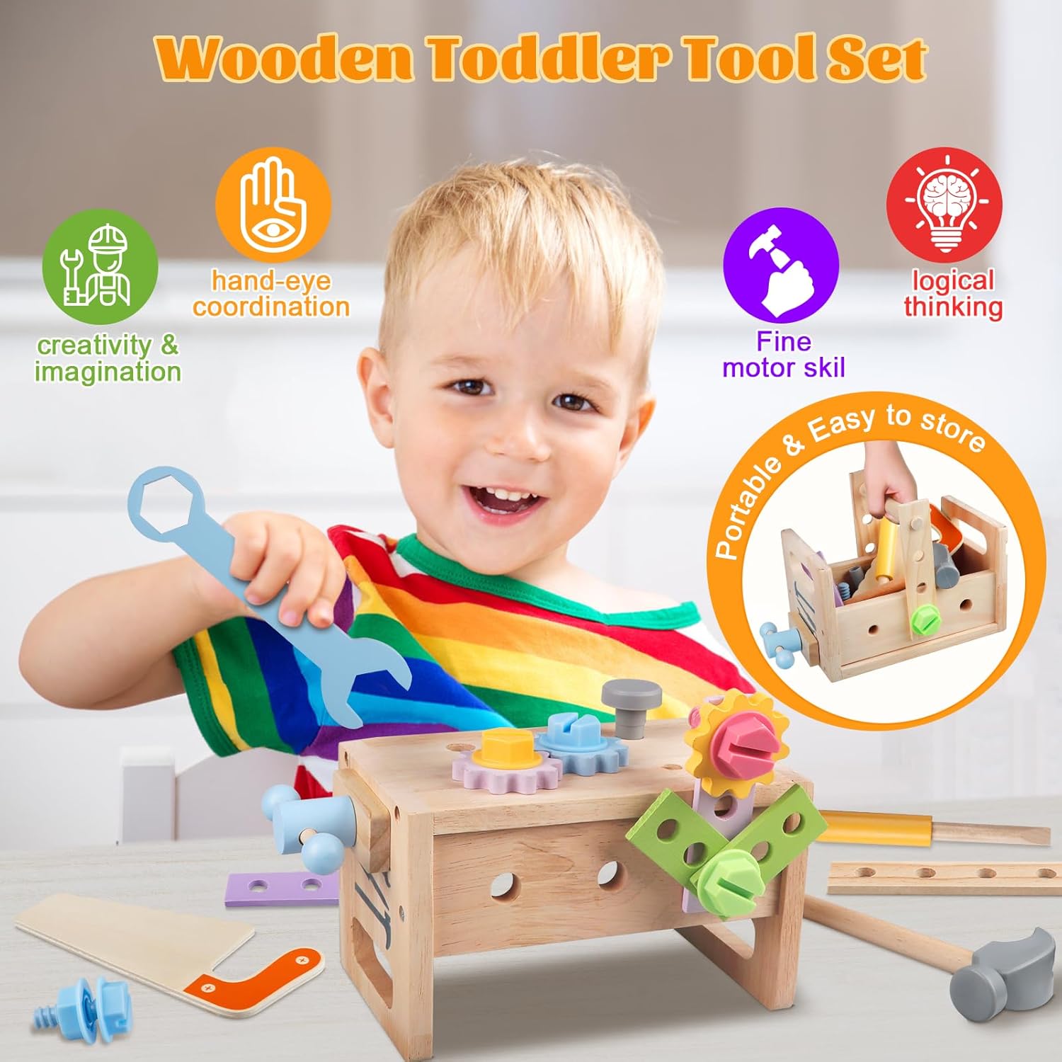 Boite à Outils en Bois Montessori pour Enfants de 3 à 5 ans