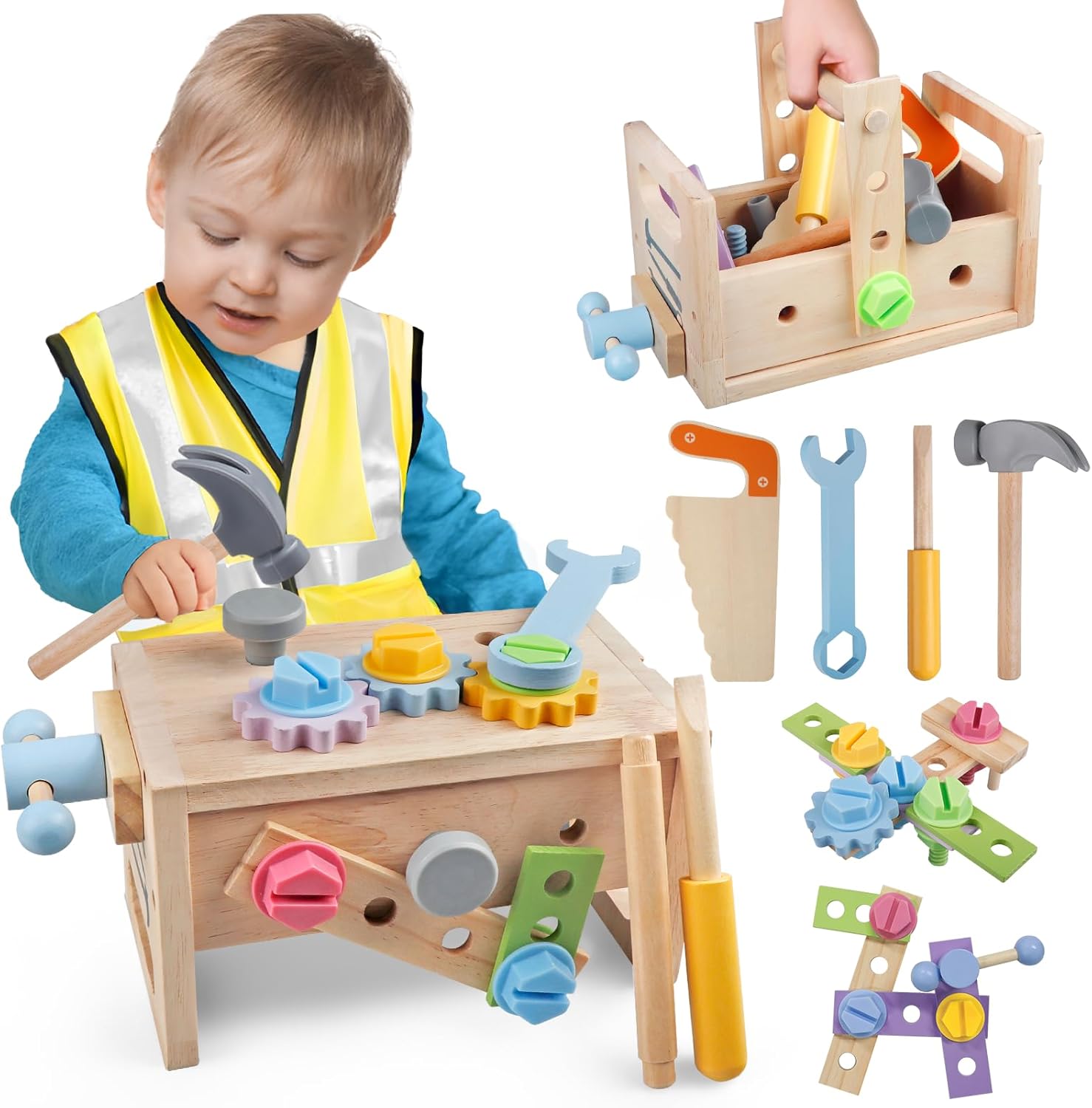 Boîte à Outils Montessori DAOUZL pour Apprentissage du Bricolage chez les Enfants