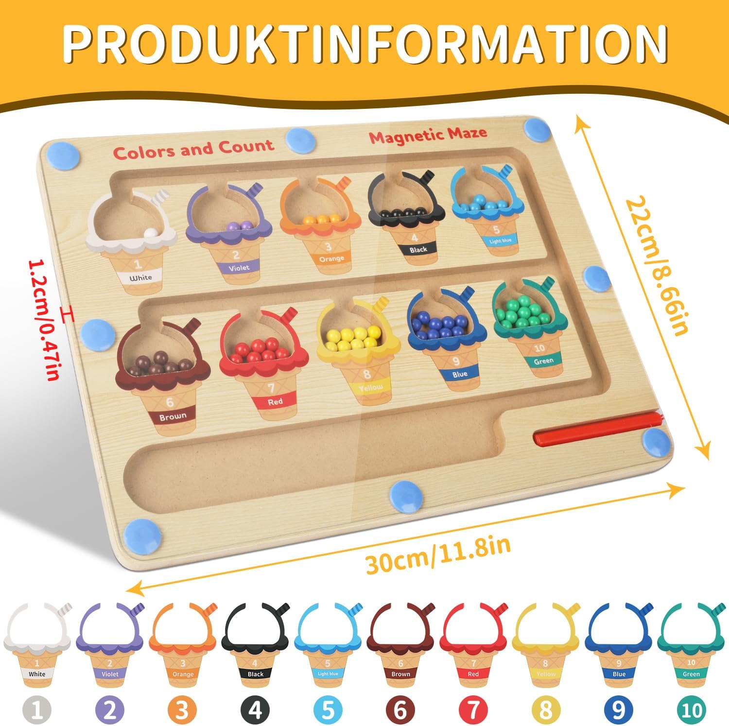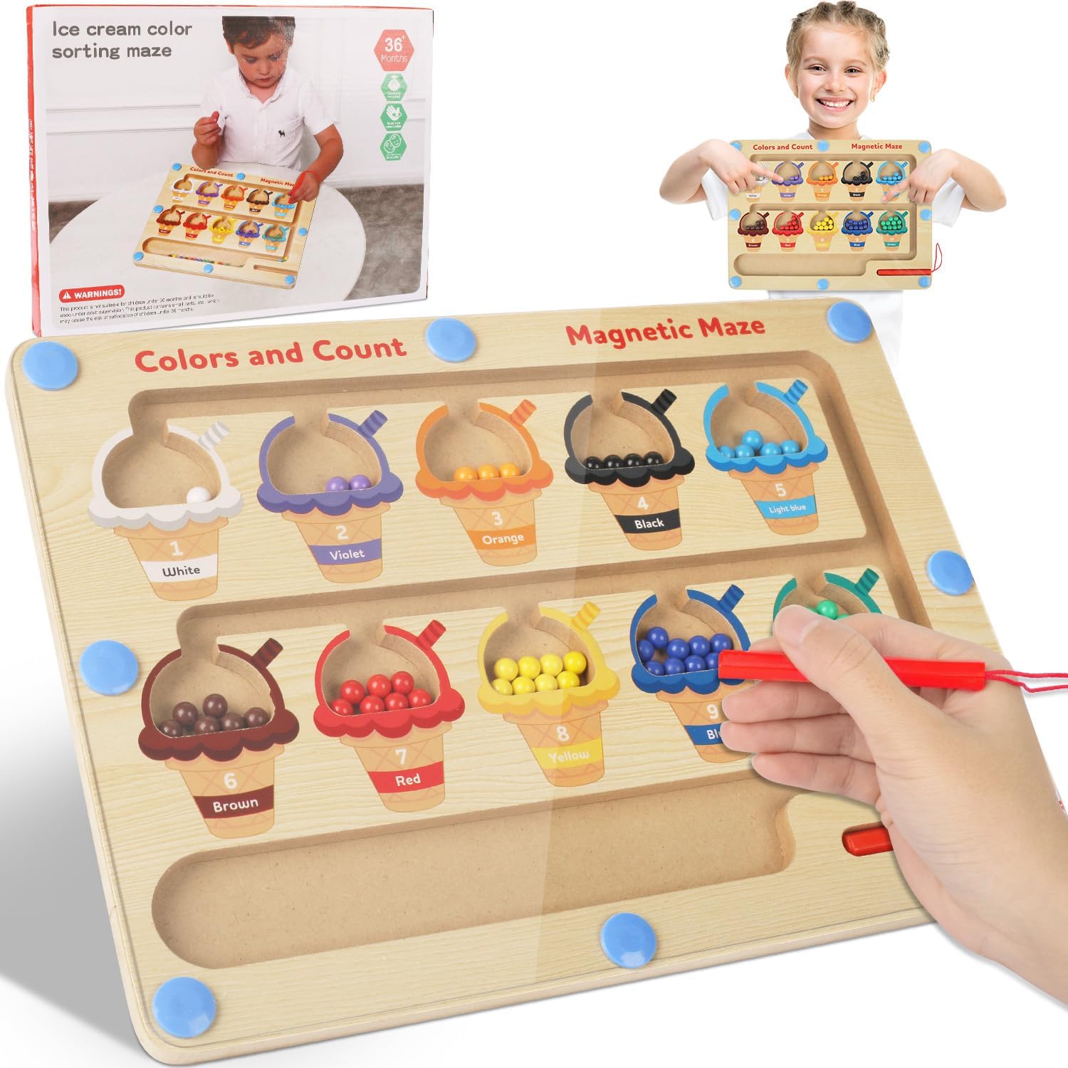 Jeu de labyrinthe magnétique Montessori pour enfants : apprentissage des couleurs et comptage