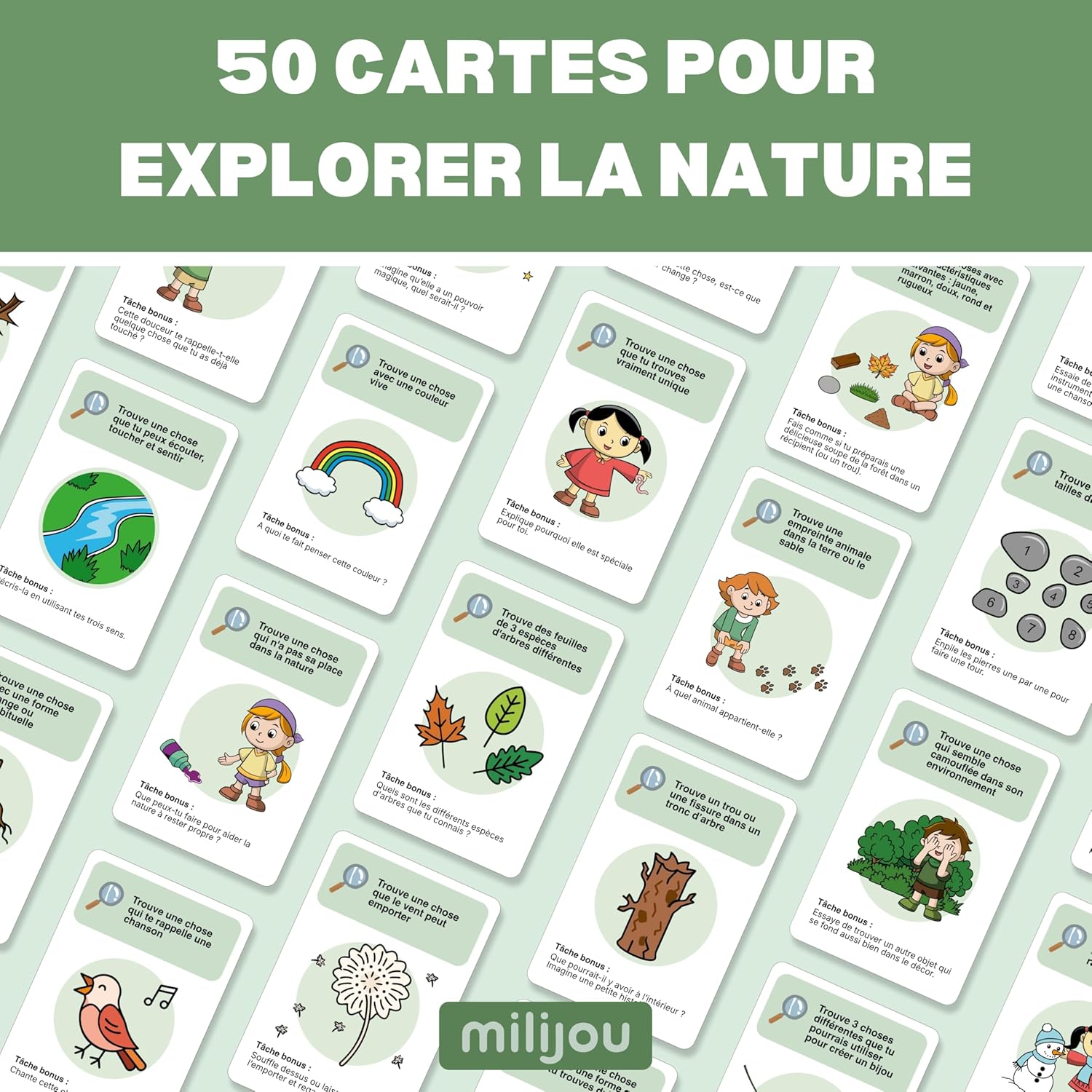 - 50 cartes uniques : Une variété de missions, questions et observations pour des découvertes infinies.