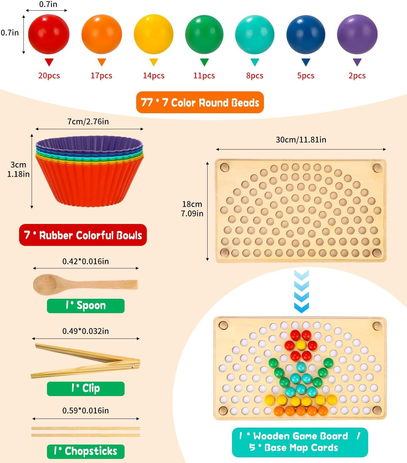 Le jeu Montessori Leazzle est bien plus qu’un simple jouet : c’est un cadeau précieux qui enrichira l’enfance de votre enfant. Il comprend 1 base de jeu en bois, 77 perles colorées (7 couleurs), 7 bols en silicone colorés, 5 cartes de base, 1 pince, 1 baguette, 1 cuillère. Idéal pour les enfants de 3 ans et plus, c’est un cadeau parfait pour les voyages et les festivals. Ses couleurs vives attirent l’attention des enfants, ce qui en fait un cadeau d’anniversaire idéal pour les garçons et les filles de 3 à 8 ans.