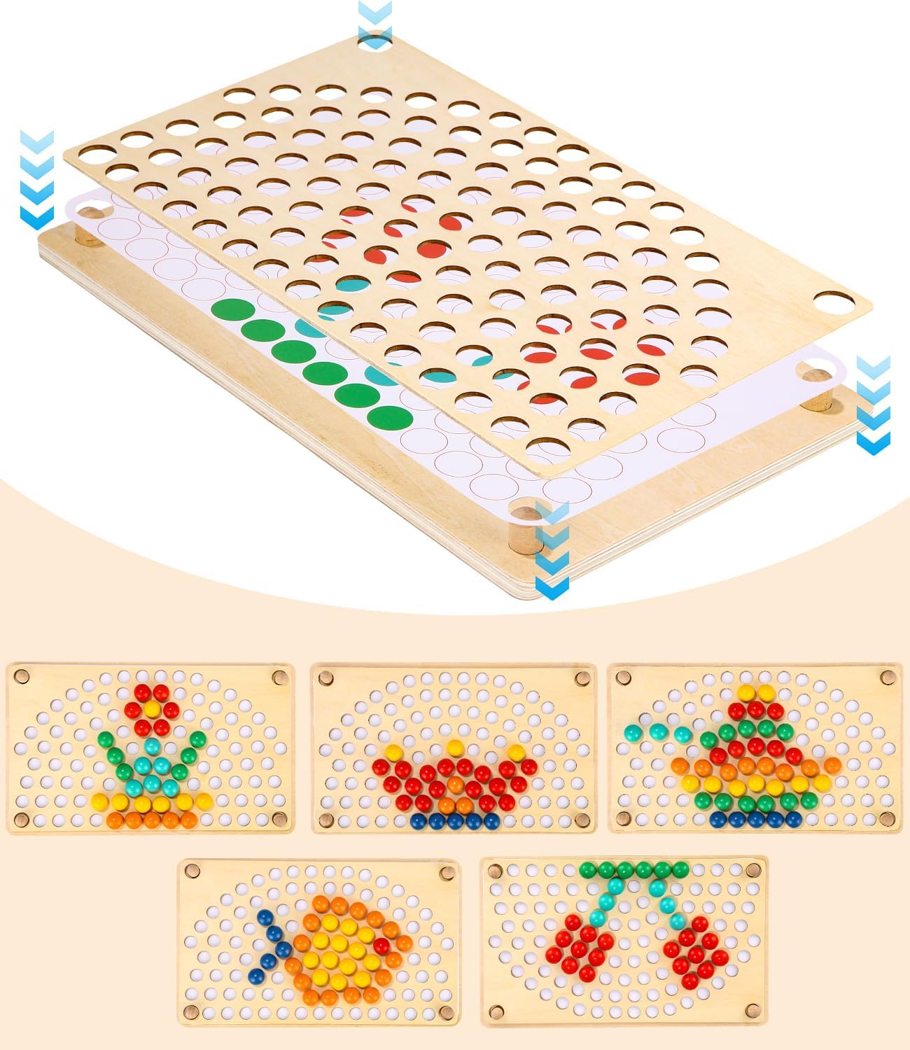Blocs et Planches de Motifs Montessori : Jouet d’Apprentissage en Bois pour Enfants de 3-6 ans