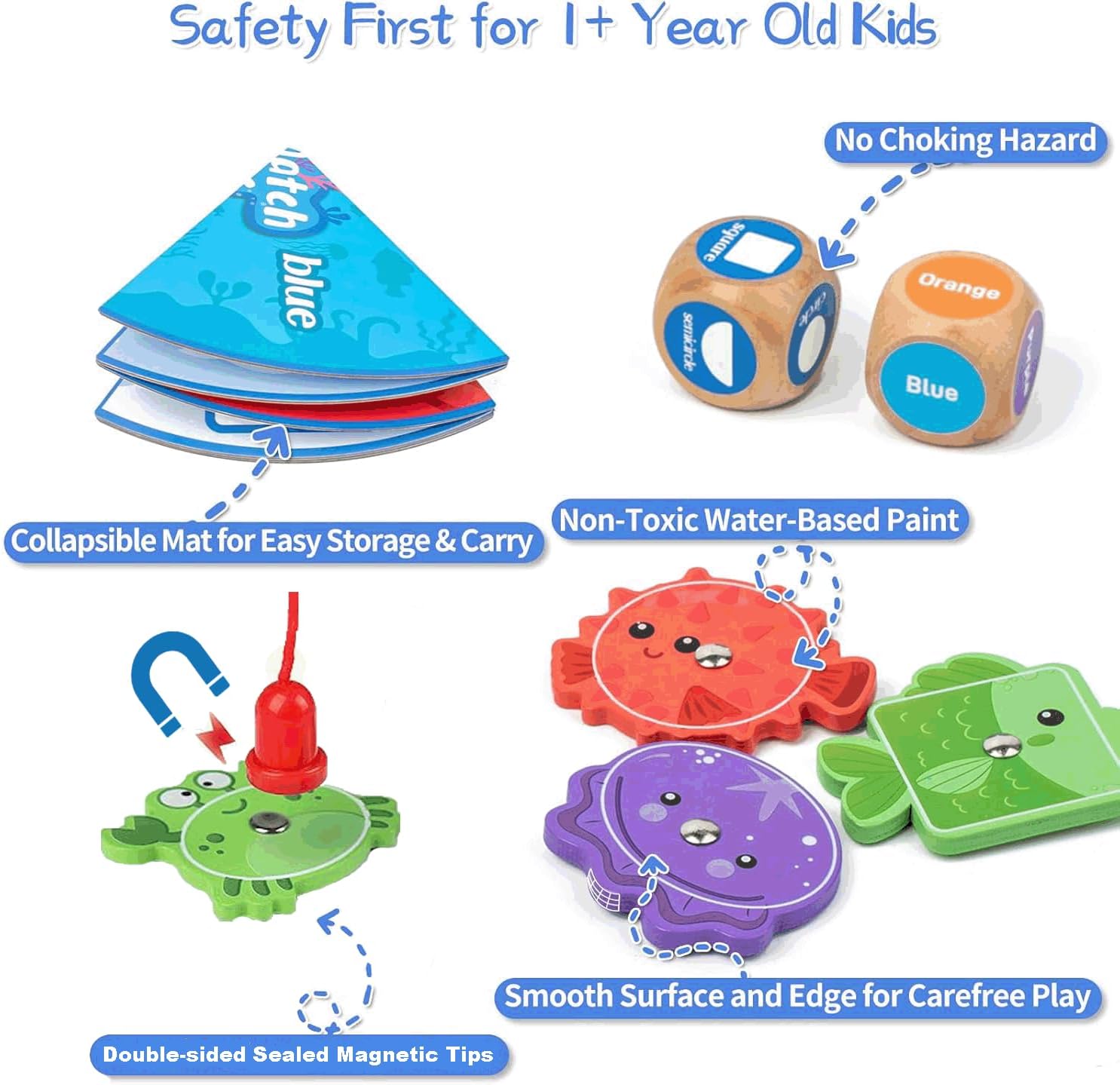Le jeu de pêche magnétique Montessori a été fabriqué en bois solide et durable. La peinture utilisée est à base d’eau, garantissant une surface lisse sans arêtes ni bavures. Cela assure non seulement la sécurité de votre enfant mais aussi la durabilité du produit. De plus, la canne à pêche est dotée d’un pouvoir magnétique renforcé qui permet d’aspirer facilement les poissons en bois.