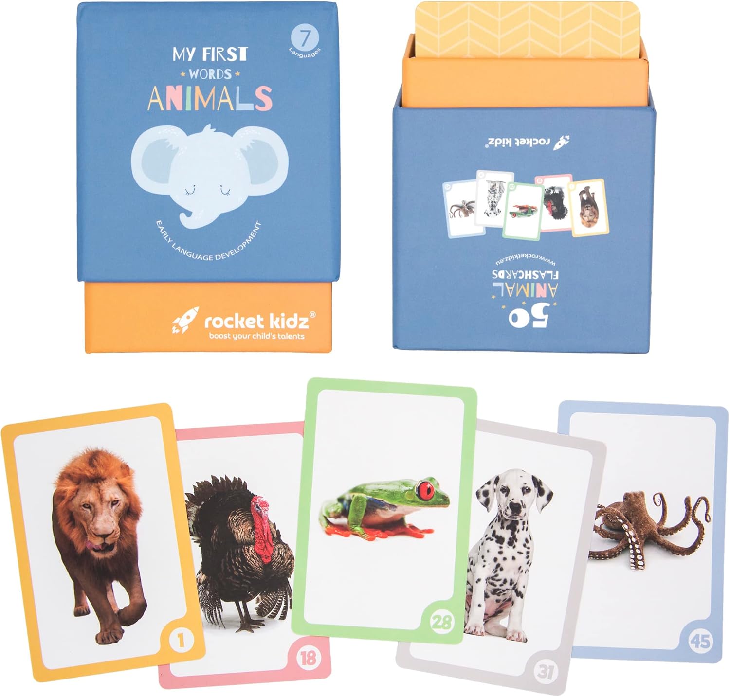 Les fiches animaux du jeu Rocket Kidz sont conçues en collaboration avec des professionnels des méthodes Montessori et Doman. Ces méthodes éprouvées renforcent la stimulation du langage précoce et du vocabulaire de votre enfant. Destiné aux enfants âgés de 1 à 5 ans, ce kit Montessori constitue un matériel de crèche idéal pour favoriser l’éveil et la curiosité.