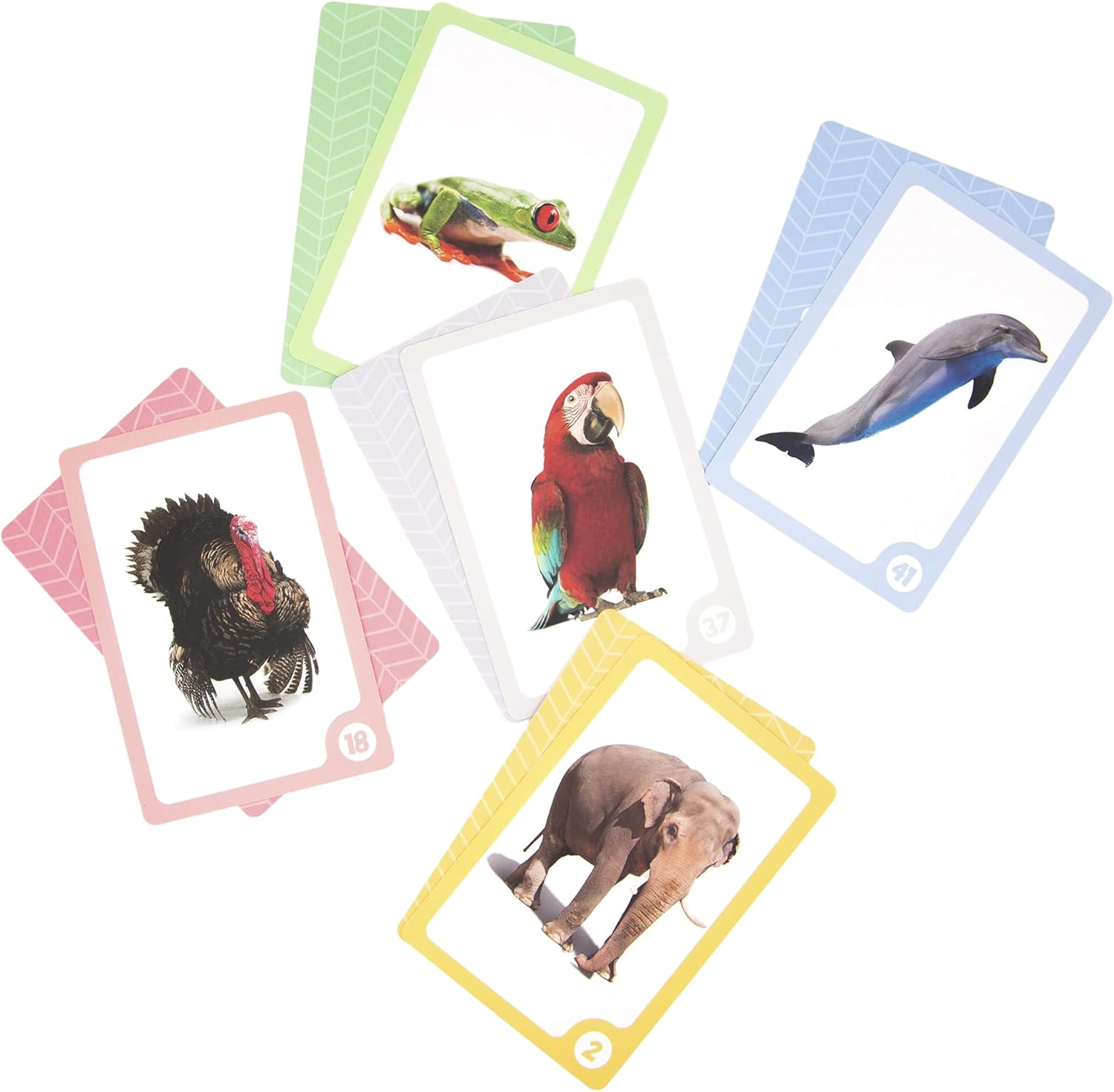Cet outil pédagogique se compose de 50 cartes éducatives illustrées avec des photos réelles d’animaux provenant de divers environnements : jungle, forêt, ferme, mer et animaux domestiques. Chaque carte est numérotée et organisée par couleur pour faciliter l’identification et la mémorisation.