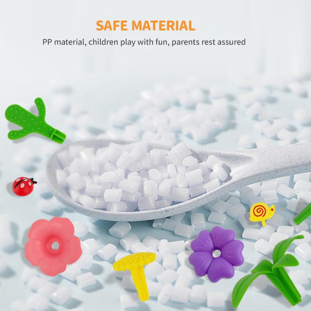 Conçu pour offrir une expérience de jeu en toute sécurité, cet ensemble est fabriqué en plastique non toxique et durable. Les bords des pièces sont soigneusement arrondis pour éviter tout risque de blessure, rendant le jeu aussi sûr que captivant. Grâce à son châssis robuste et ses fentes ingénieusement pensées, chaque création florale reste solidement assemblée, permettant aux enfants de manipuler leurs œuvres sans crainte qu’elles ne se détachent.
