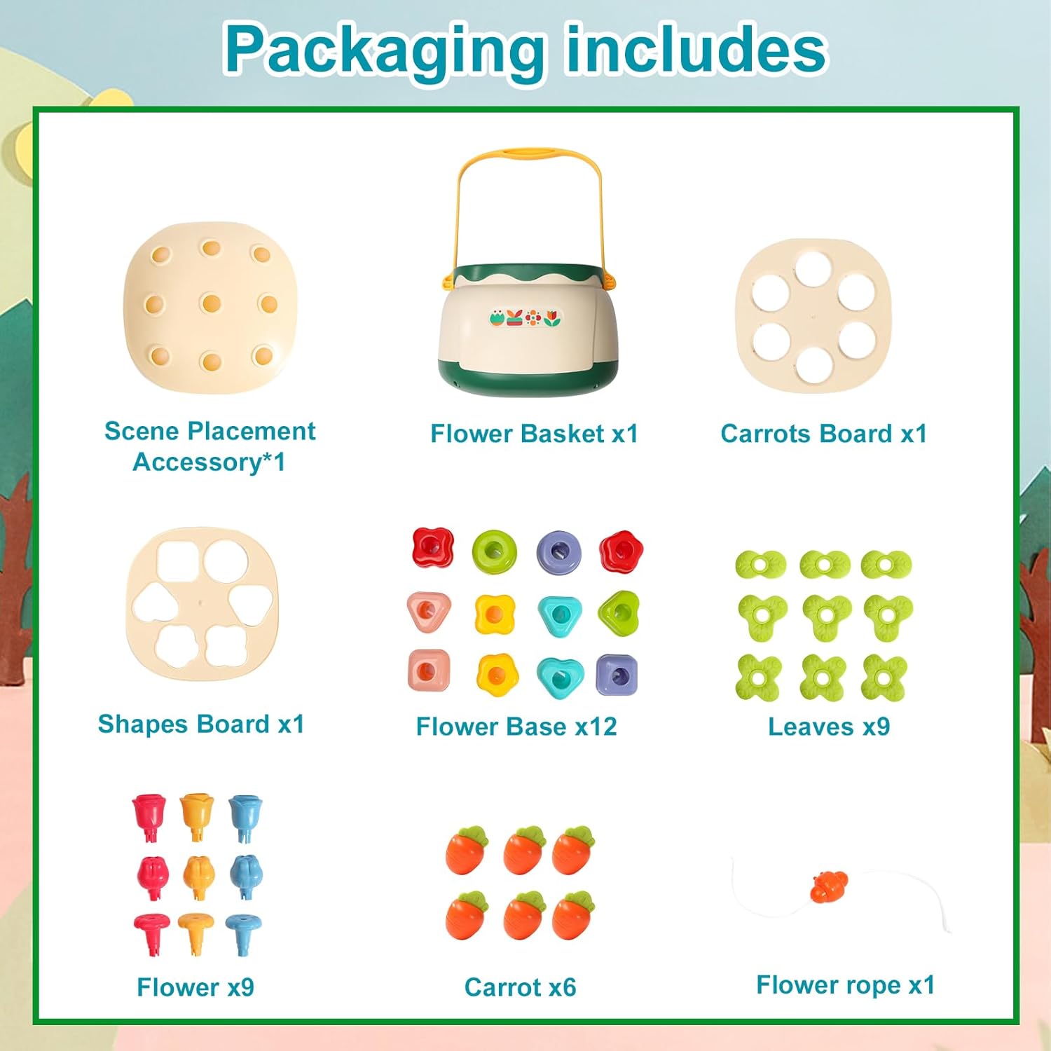 Chaque élément du jouet de construction fleurs Montessori a été conçu avec soin pour garantir la sécurité des tout-petits. Fabriqué avec des matériaux non toxiques et durables, ce jeu est idéal pour les enfants dès leur plus jeune âge. Les pièces sont parfaitement adaptées aux petites mains, permettant une prise en main facile et confortable. Offrez à votre enfant un jouet sûr qui favorise son développement tout en éveillant son imagination.