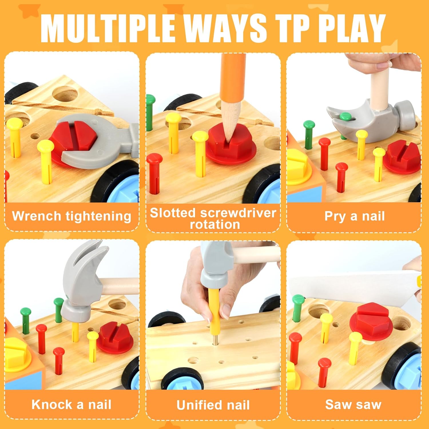 Ce jeu éducatif Montessori a été pensé pour soutenir le développement des enfants dans les domaines de la résolution de problèmes, de la coordination main-œil et de la compréhension des outils et concepts mécaniques. En parfaite adéquation avec les valeurs Montessori, il met l’accent sur l’apprentissage pratique et les compétences de la vie quotidienne.