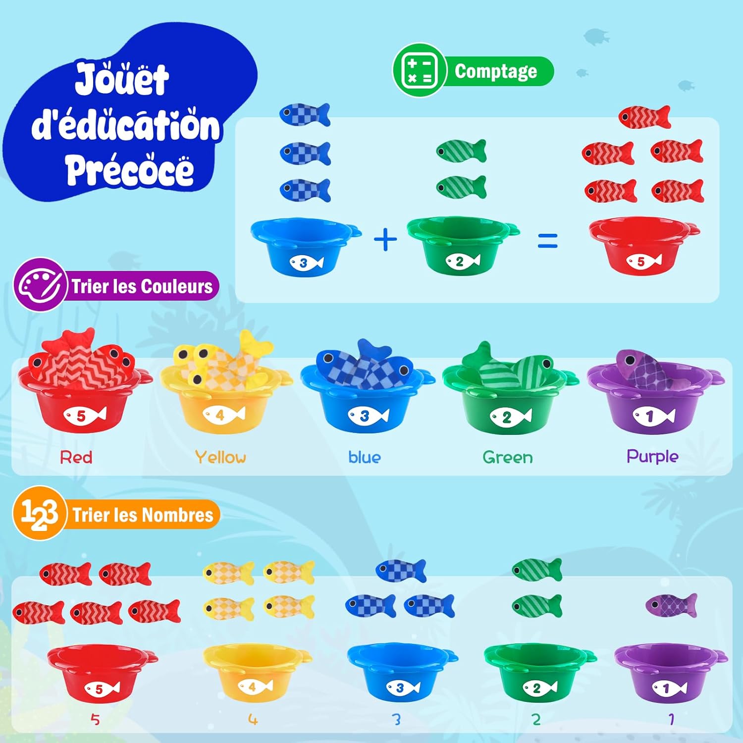 Laissez votre enfant explorer le monde sous-marin tout en développant ses compétences avec ce jouet de pêche éducatif Montessori. Une véritable invitation à l’apprentissage par le jeu !