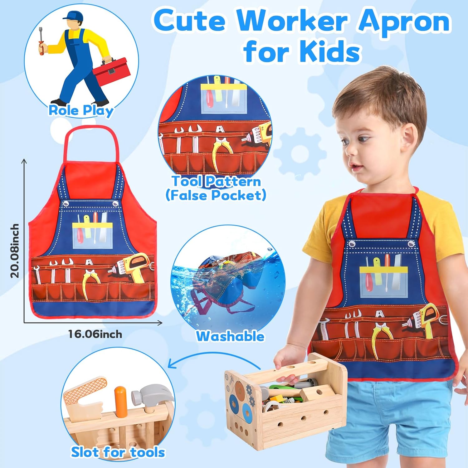 Cette boîte à outils pour enfants peut être utilisée comme boîte de rangement, mallette de transport et banc à outils pour enfants. Les poignées permettent aux enfants de transporter facilement les outils et les boîtes à outils n’importe où. La boîte à outils en bois est suffisamment grande pour contenir tous les outils et accessoires des jouets. Retournez la boîte à outils et elle se transforme en un mini-établi pour enfant, robuste et durable.