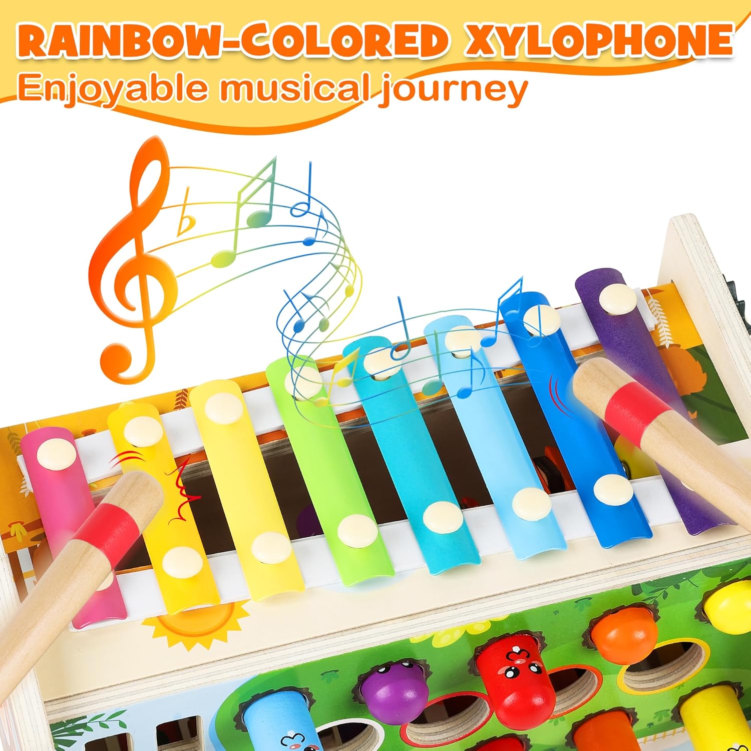 Ce jouet offre une multitude d’options de jeu, dont la frappe d’une taupe, la pêche, le xylophone, l’horloge, l’équipement, le comptage et la reconnaissance des couleurs. Ces activités stimulent les capacités cognitives de votre enfant, tout en éveillant son potentiel musical.