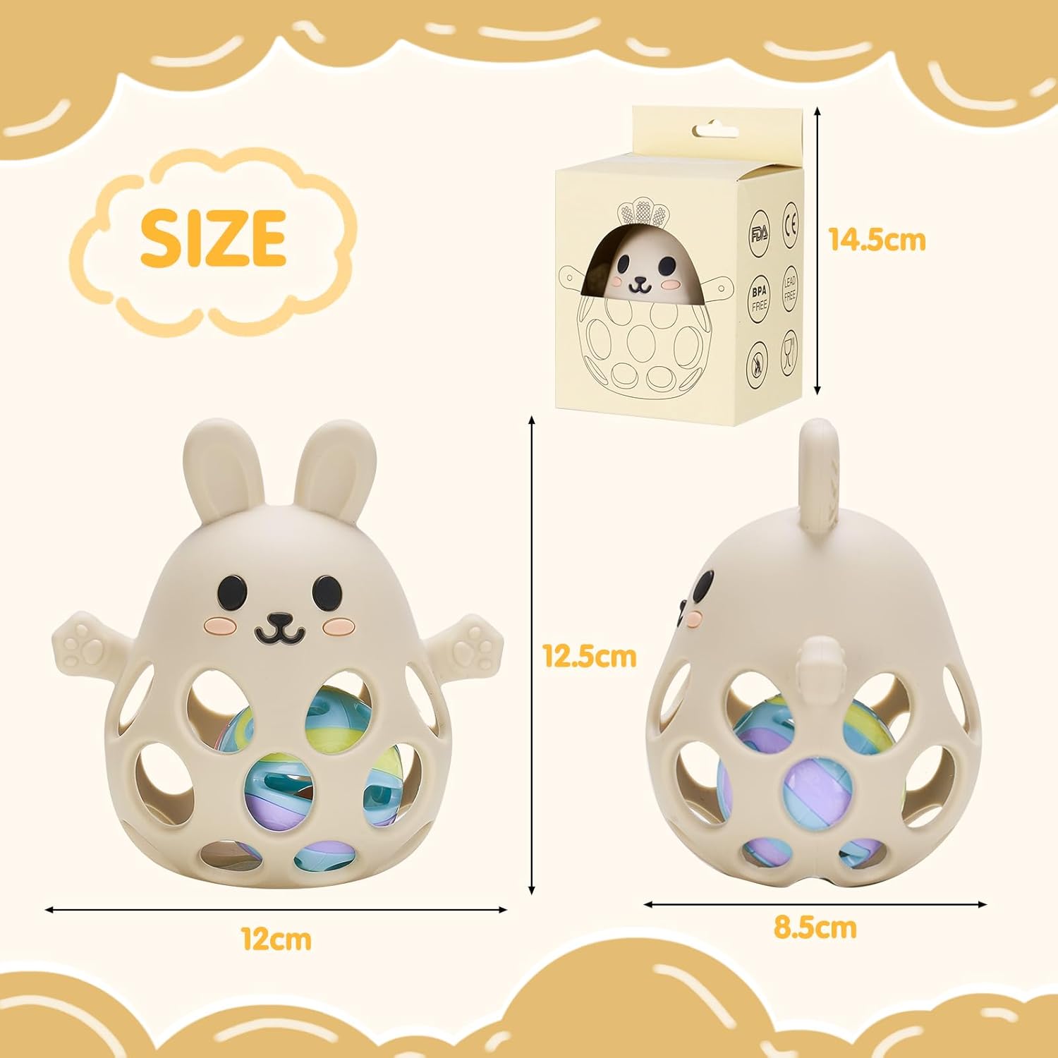 Le design antidérapant de ce jouet facilite sa préhension par les petites mains encore peu habiles des bébés. À l’intérieur de la boule de préhension, une poignée spécialement intégrée permet à votre enfant de tenir fermement son jouet sans risque qu’il ne tombe ou ne se perde. Cette fonctionnalité innovante encourage également le développement de la motricité fine, tout en offrant un substitut sûr et hygiénique à la succion ou à la mastication des doigts.