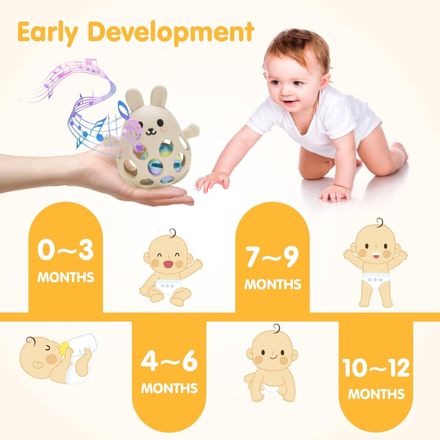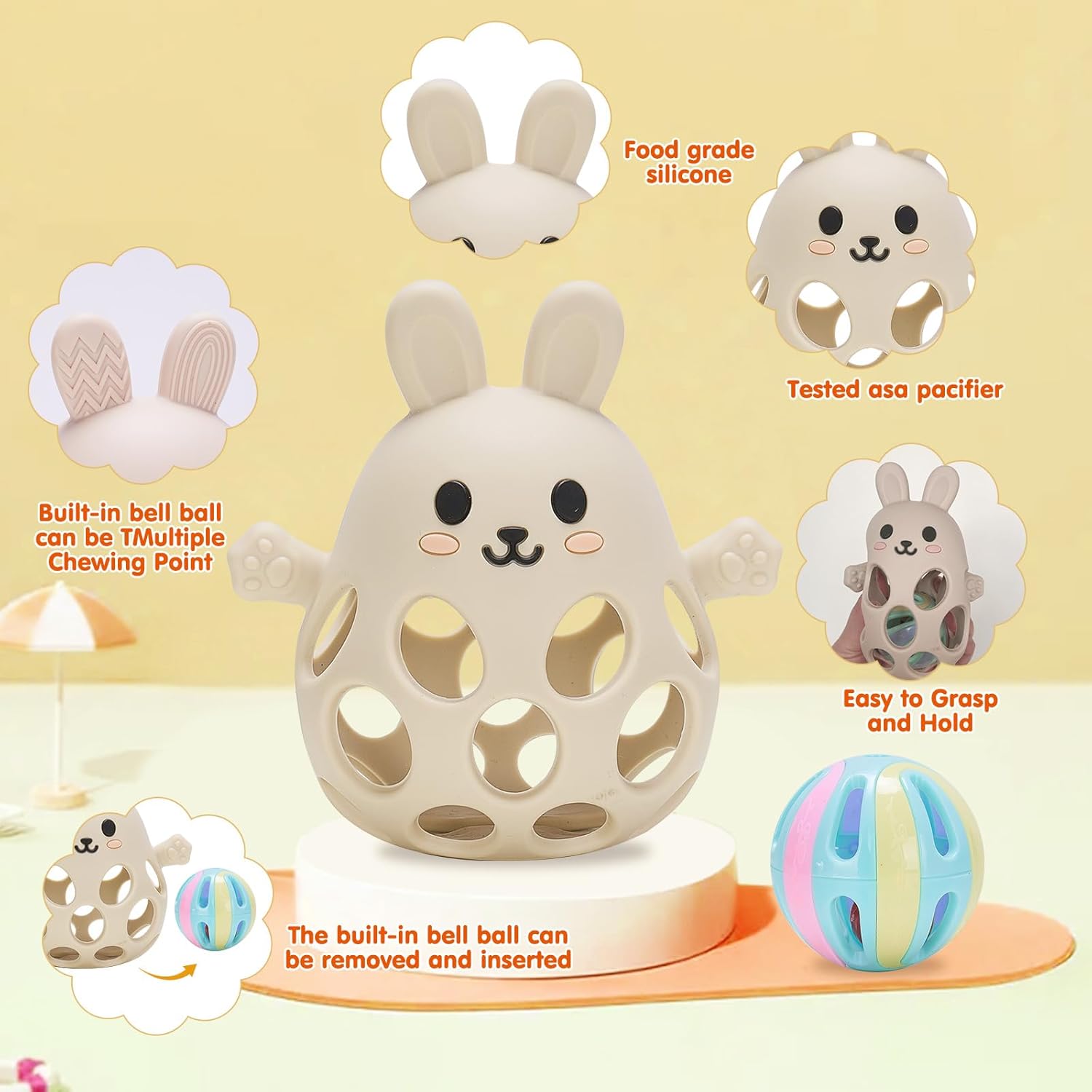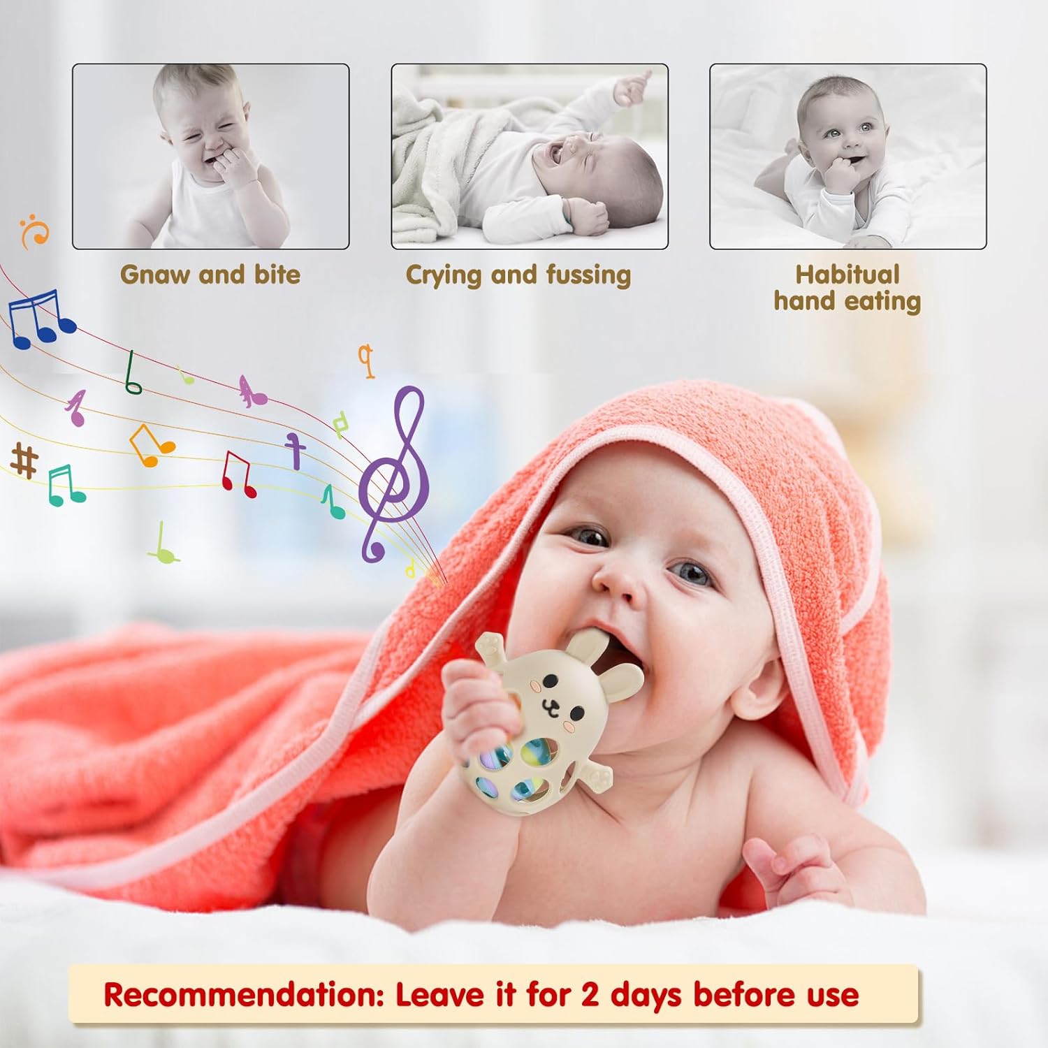 • Soulagement des poussées dentaires : Apaisement des gencives grâce aux textures en silicone souple.