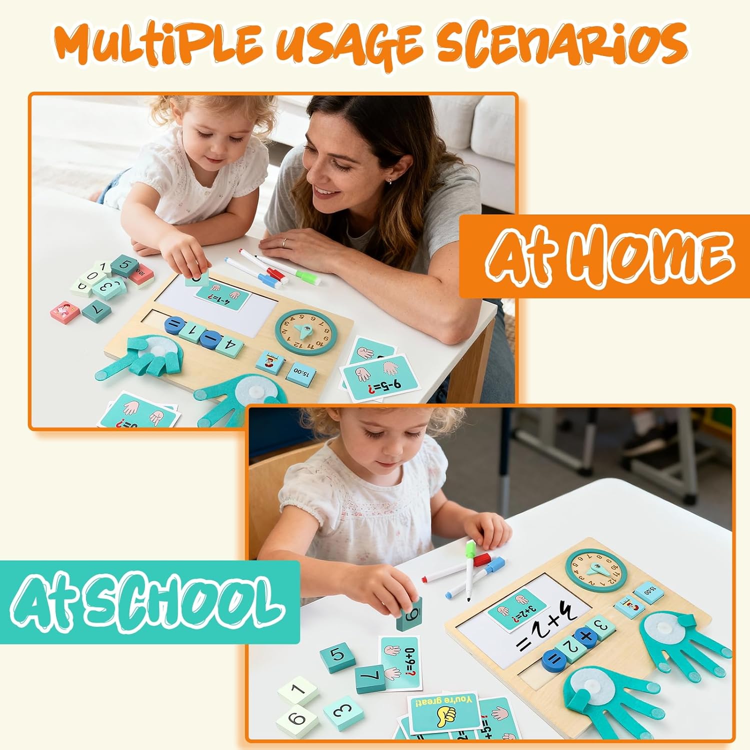 Les deux mains en feutrine intégrées sont bien plus qu’un simple élément décoratif. Elles permettent aux enfants de reproduire les chiffres avec leurs doigts, rendant les concepts abstraits de quantité plus tangibles. Cette activité encourage également le développement de la coordination œil-main, de la précision et de la dextérité, compétences essentielles pour leur croissance.