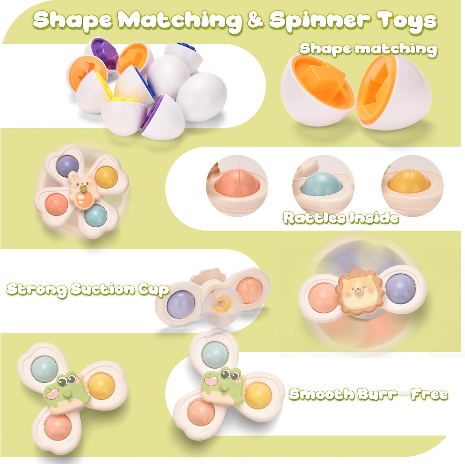 La sécurité de votre enfant est notre priorité. Tous les jouets inclus dans ce coffret Montessori sont fabriqués avec des matériaux 100 % sûrs, comme le silicone alimentaire durable, l’ABS robuste, le bois naturel et une peinture à base d’eau non toxique. Les surfaces lisses et les bords arrondis offrent une expérience de jeu sécurisée, même pour les petites mains curieuses. Ces jouets sont également faciles à nettoyer, résistants à la décoloration et exempts de substances nocives telles que le BPA et les phtalates.