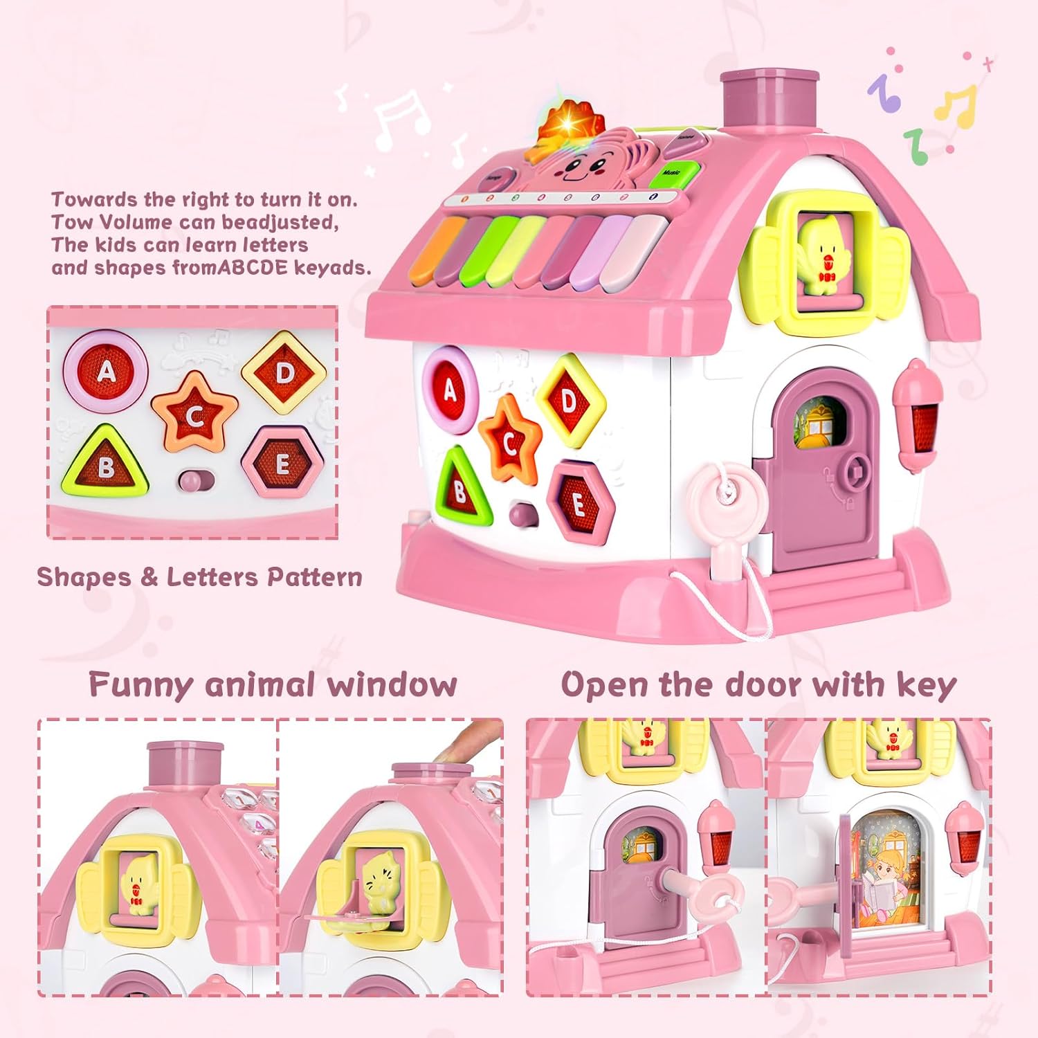 Introduisez votre enfant à une expérience d’apprentissage riche et stimulante avec le Jouets Montessori 8 en 1 pour Tout-Petits : Maison d’apprentissage Intelligente. Chaque côté de cette maison hexagonale colorée est une nouvelle aventure qui attend votre tout-petit, offrant un assortiment de jeux pour éveiller son esprit et ses sens.