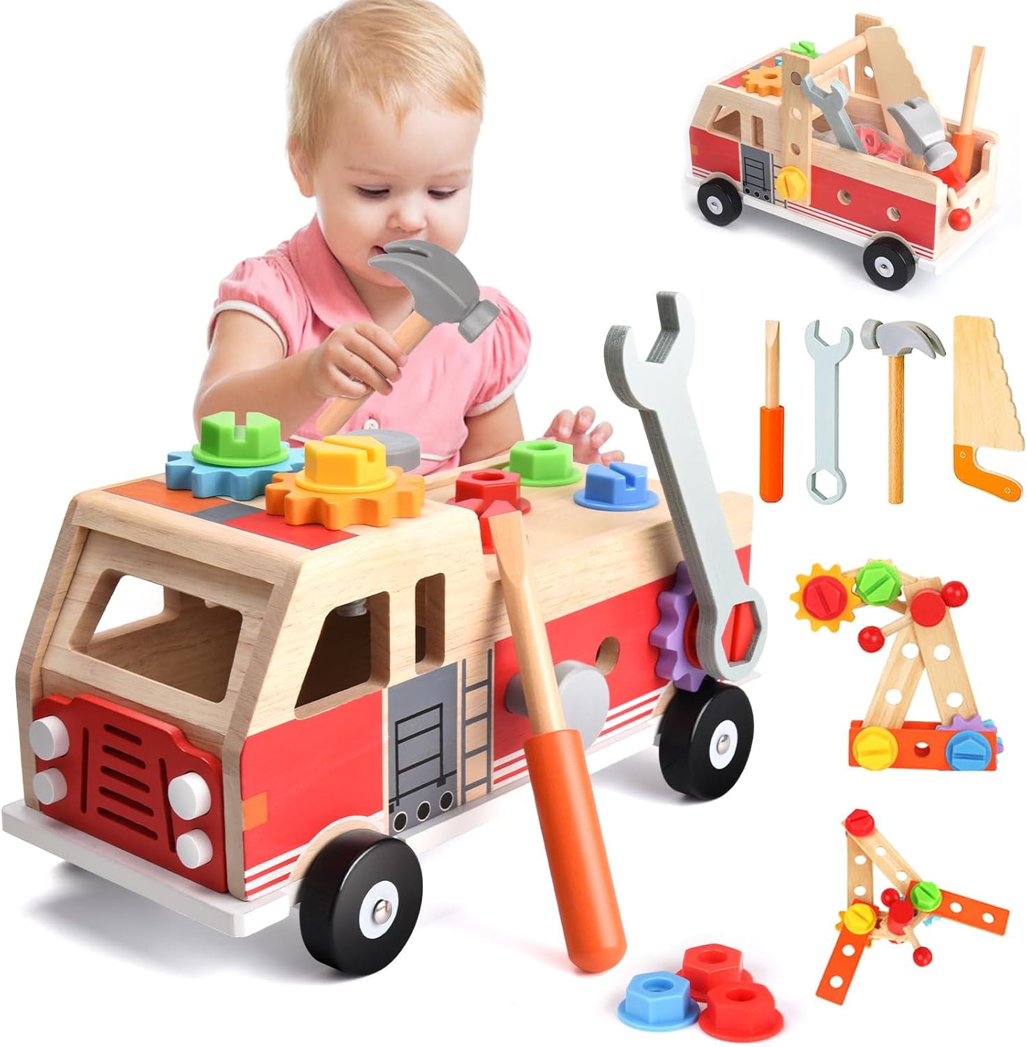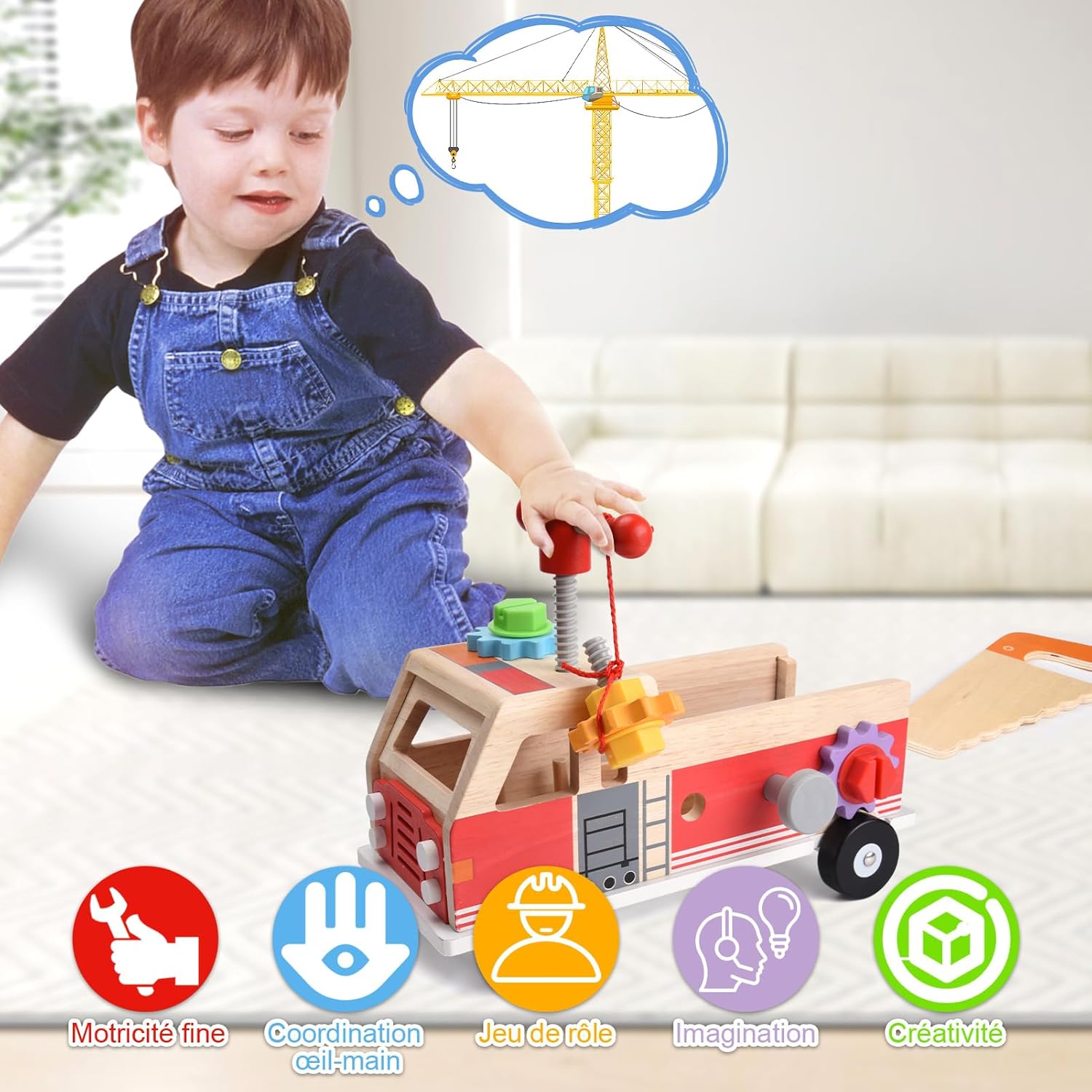 Kit de bricolage Montessori : camion de pompier en bois pour enfants de 2 à 4 ans